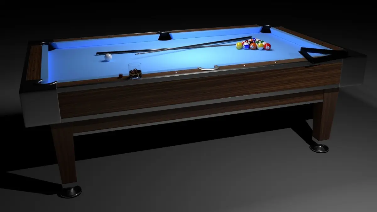 Nice pool table with accesories. Material and textures.Easy to animate.After optimal subdivide cca 200 000 polygons.Made in Blender.