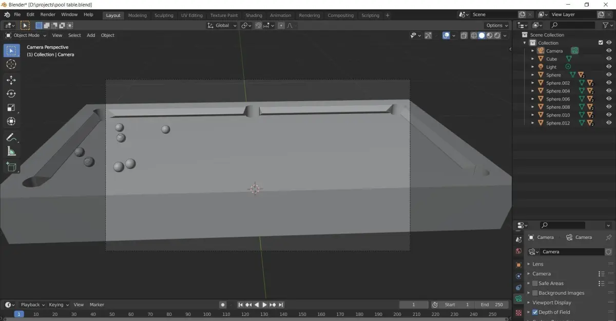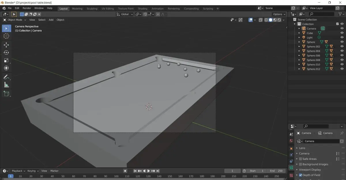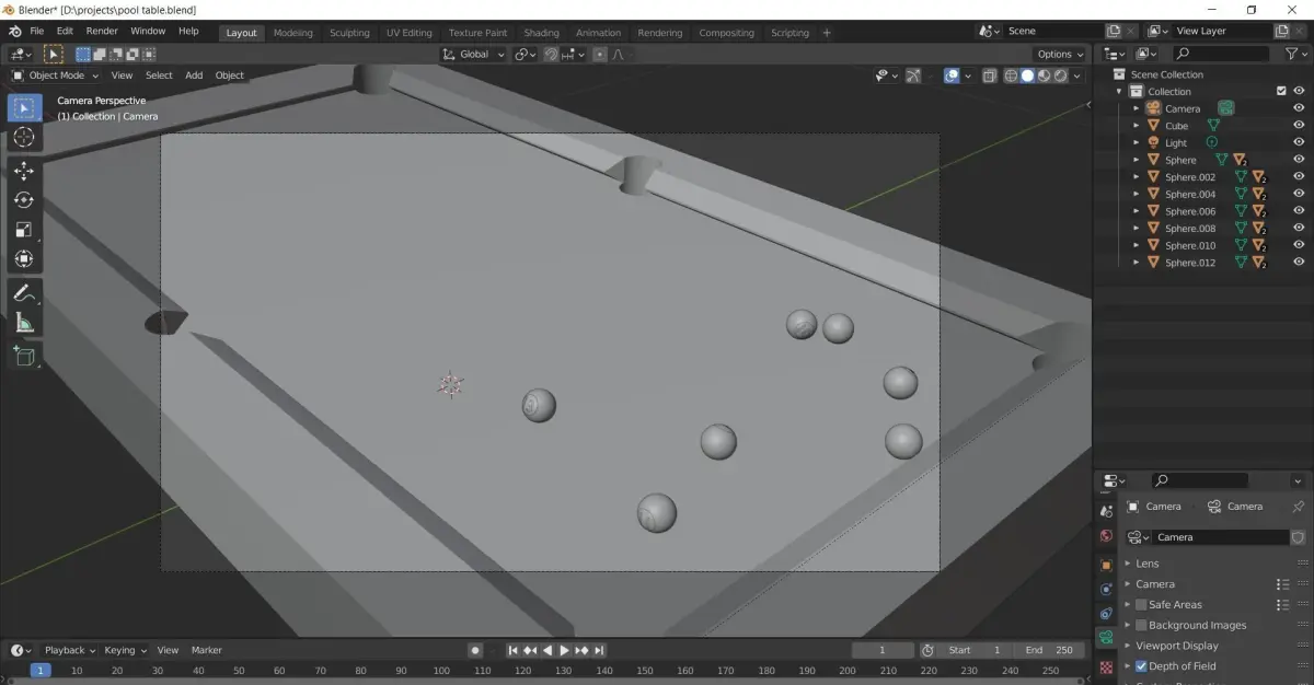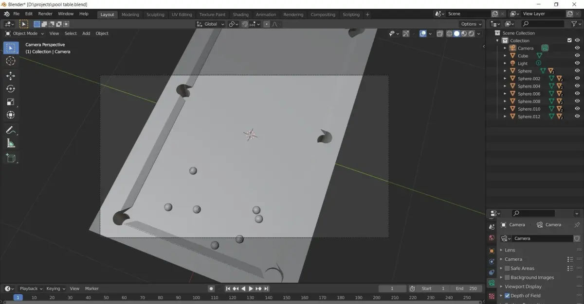 pool table with balls made with blender