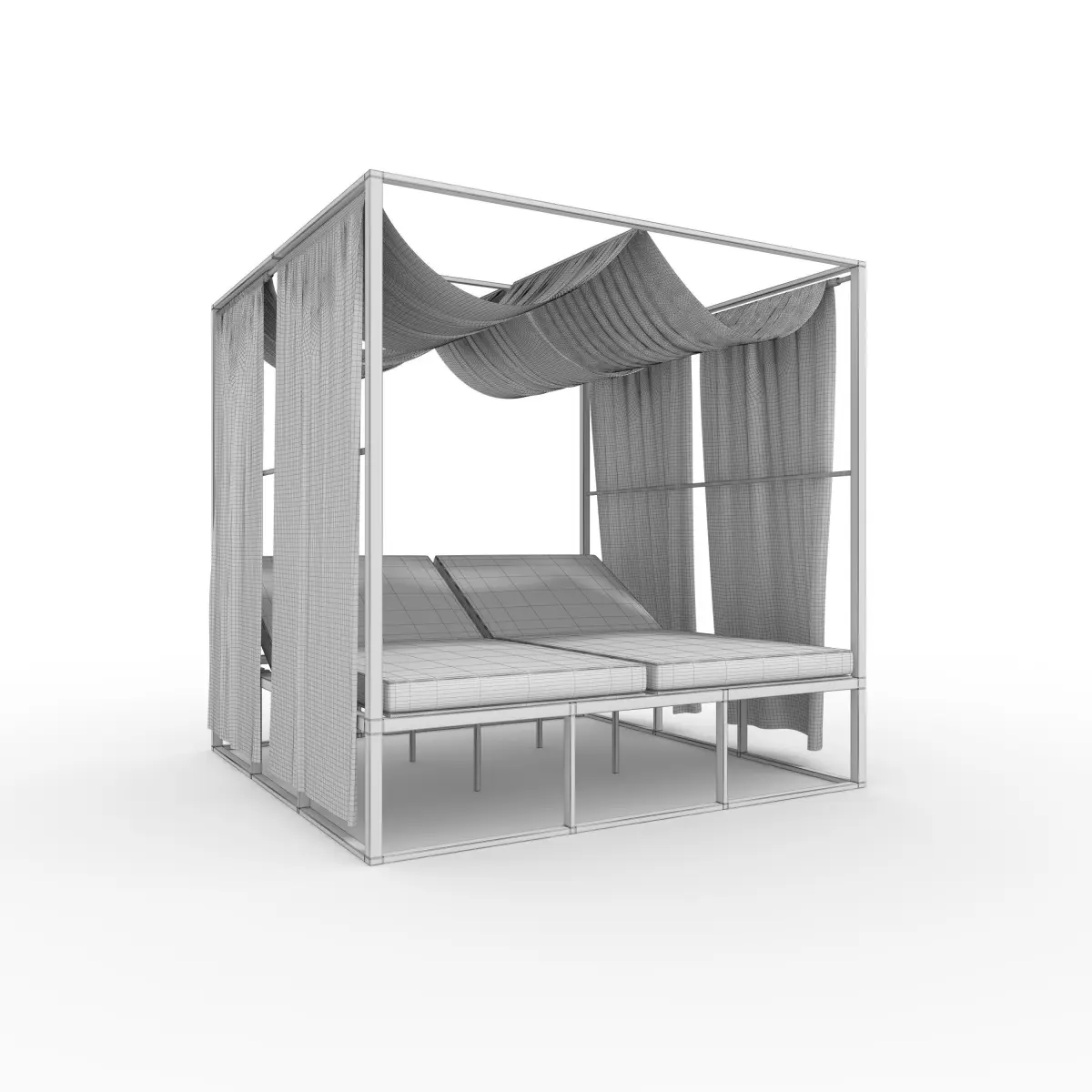 Poolside Cabana 05 with Animated Curtain Blowing in the Wind