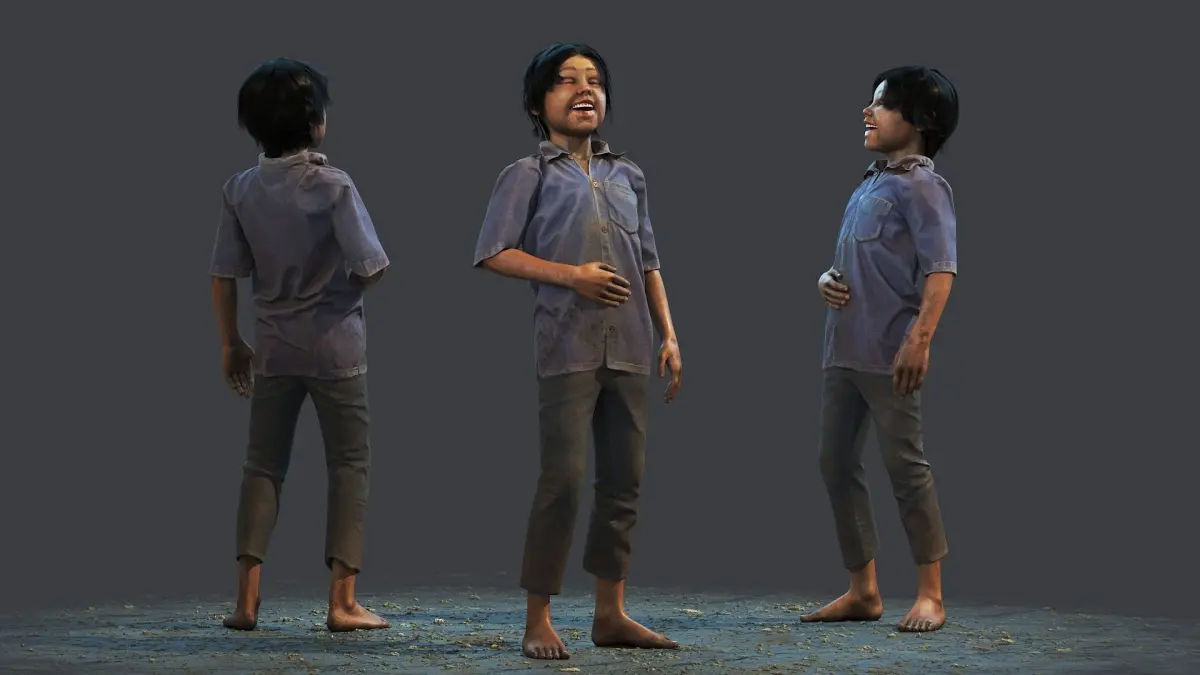Hight quality 3d model of a poor child. Unisex about 8 years old.