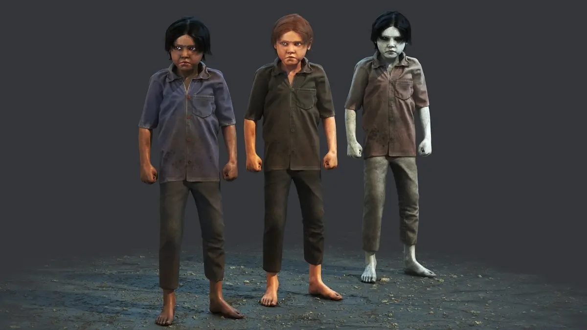 PBR texture sets: Albedo (color), Normal and Specular/Smoothness maps of the body. Also two textures of the hair (alpha and color). Unreal Engine texture set. Three color variations - dark skin, blonde and scary one.