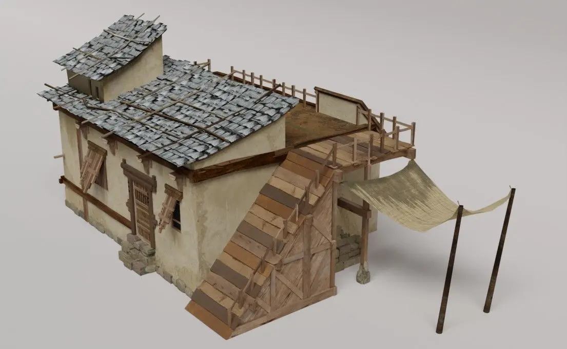 Poor man's house PBR low-poly 3d model. The house is built of simple materials.Suitable for use in a Country Landscape.
