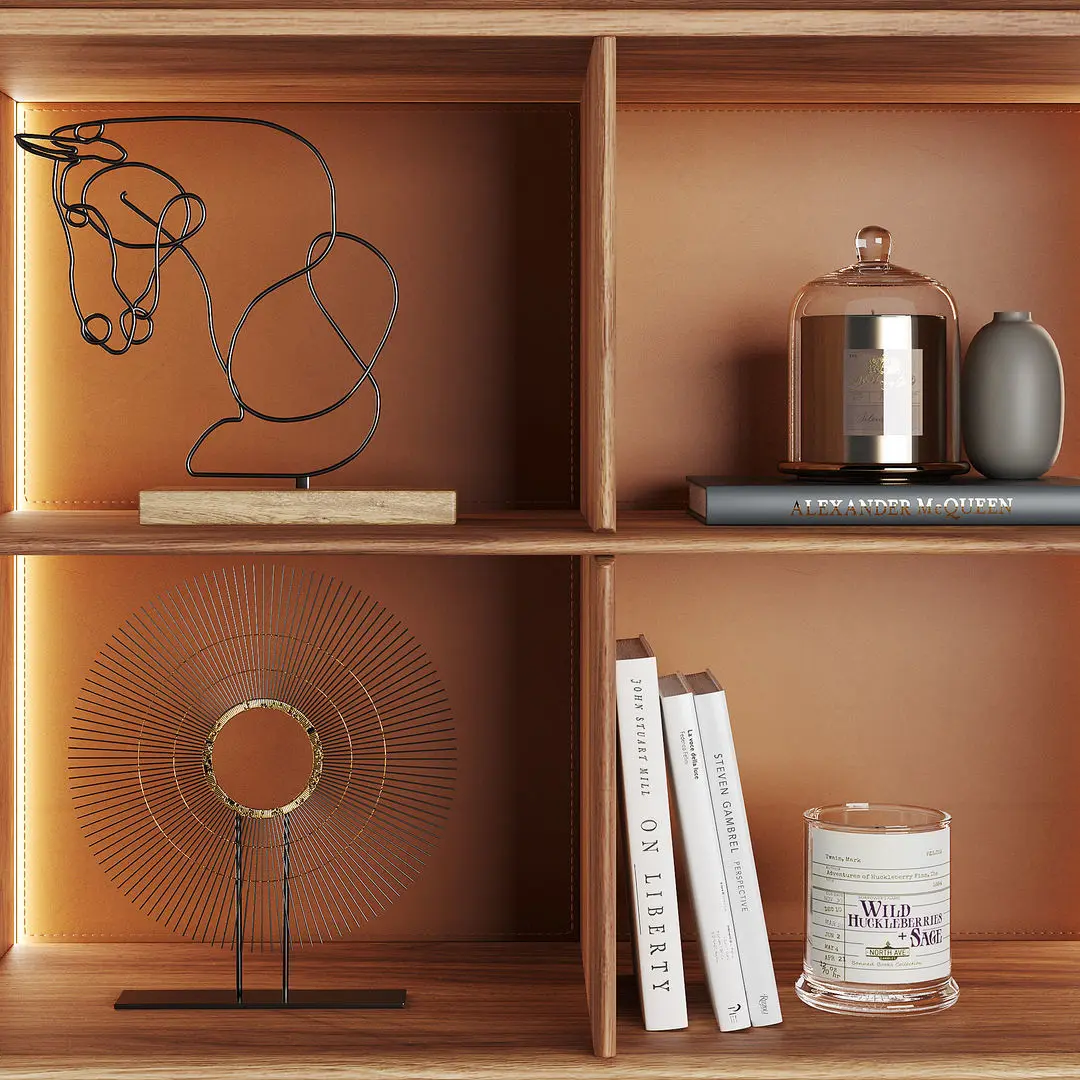 The model contains two cabinets: Matics 1 door and Matics 1 open.Materials: Wood, Leather, Glass, Metal.