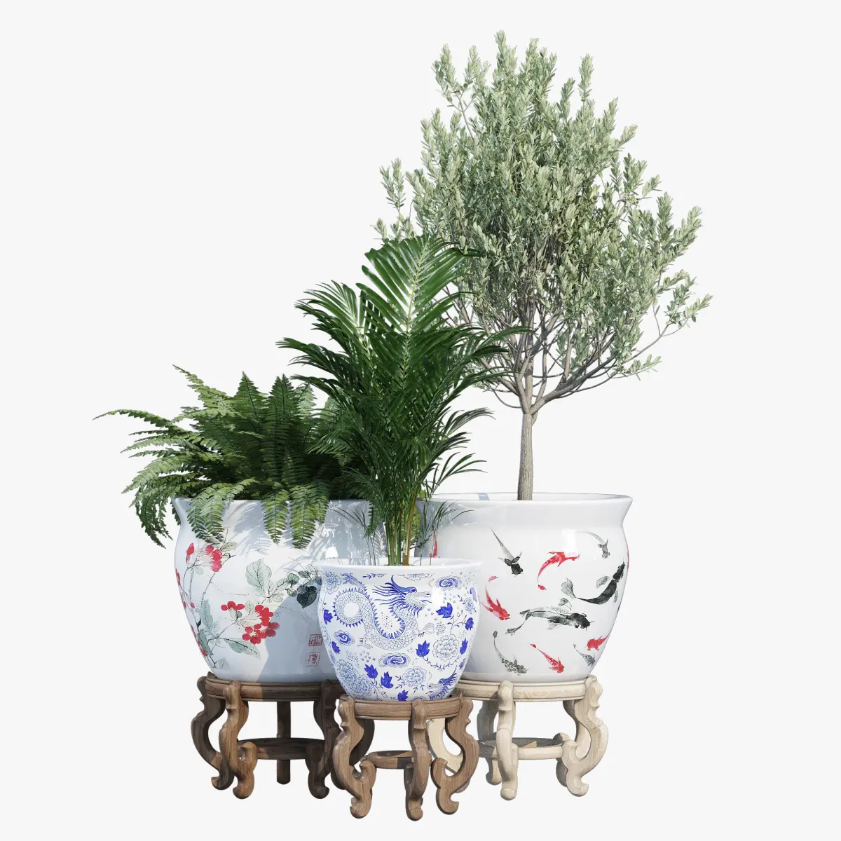 Handmade Oriental Home Porcelain Cherry Blossom Fishbowl (China)Color: White, Red, Tan, Black