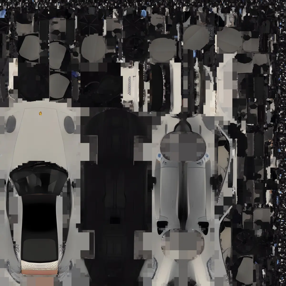 A 3D model of porsche car in a open area. The car is still, in a good lighting and is very subtle it looks real good and is very sporty looking