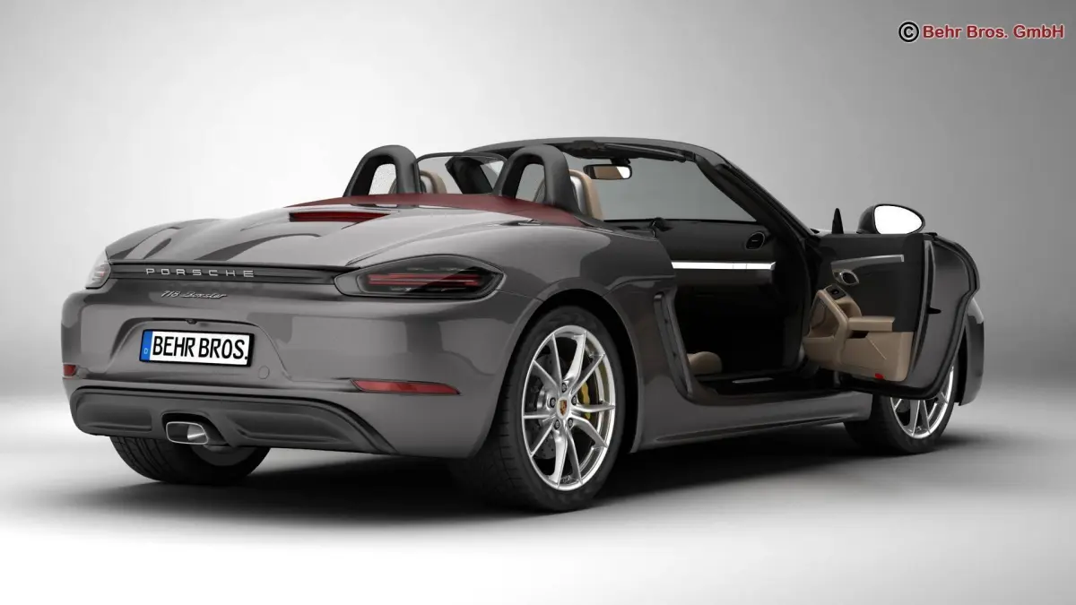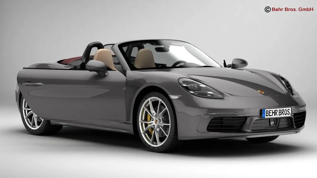 Accurate very high definition Porsche 718 Boxster 2017 model with highly detailed interior fully textured. Headlights and taillights are modelled, doors can be opened. The model includes modelled tires.