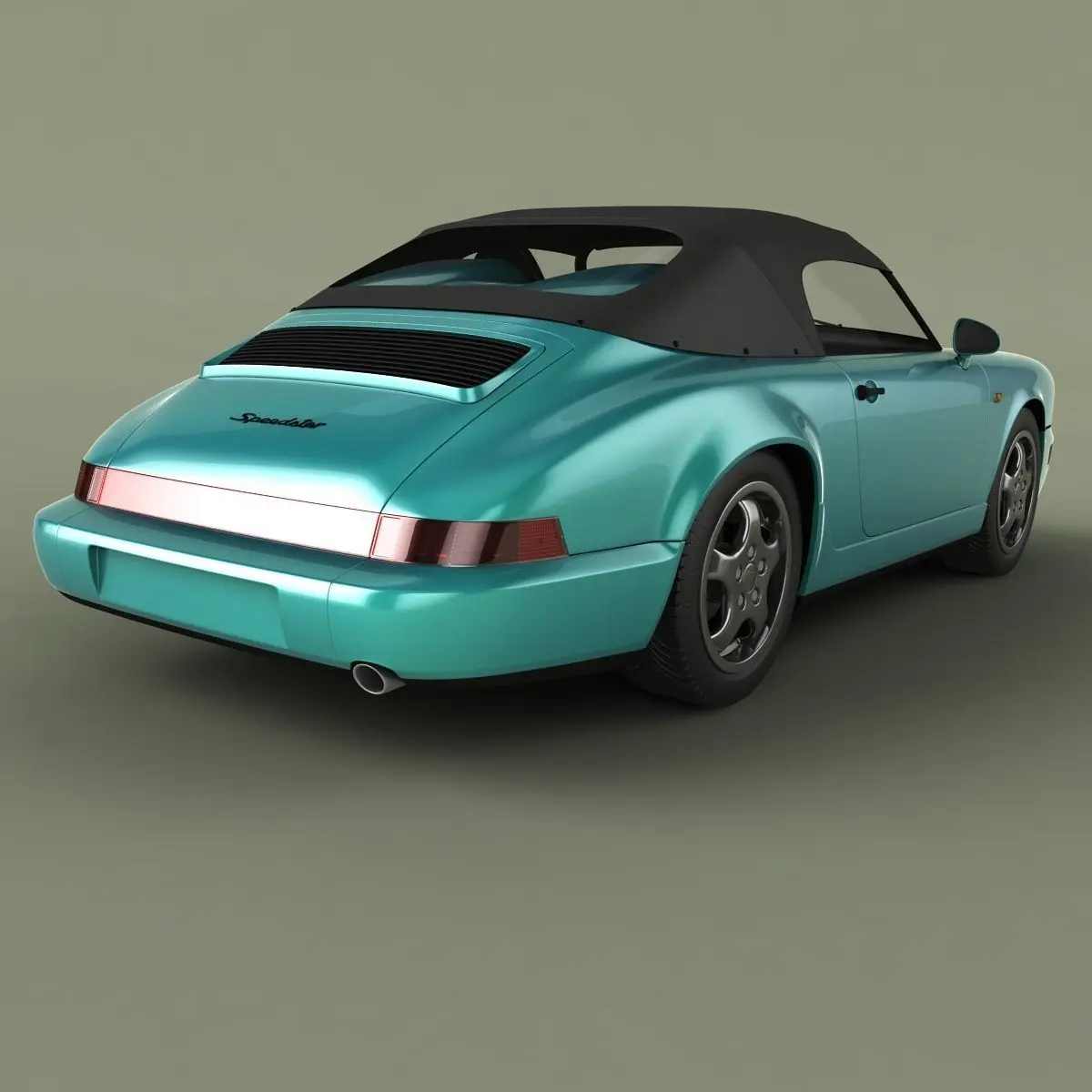 High detailed, correctly scaled model of 1989 Porsche 911 964 Speedster. Originally created with 3ds Max 8. Rendered with V-Ray, files with standard materials are included. Unit system is set to metric units. Model is built to real-world scale. Geometry is Editable Poly (quads/tris only). TurboSmooth is use separately to objects (104 of 144 named objects) with iterations 2 ( 978388 polys, 515841 vert.) Each file was checked before upload. Materials and textures are included (7 textures - jpg 1024X1024).