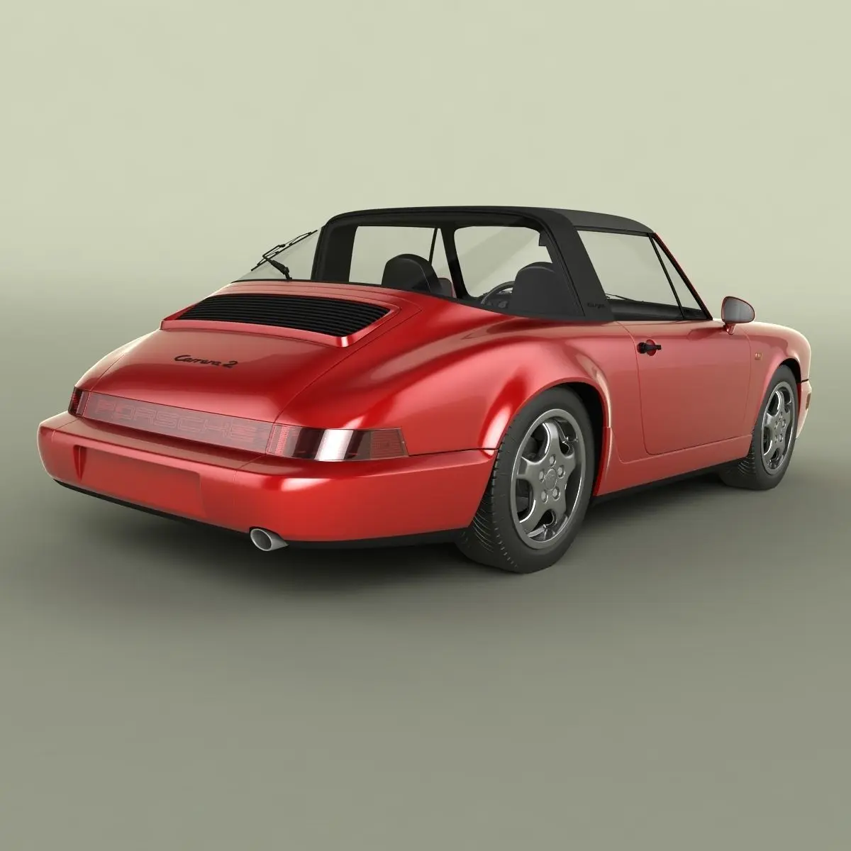High detailed, correctly scaled model of 1989 Porsche 911 964 Targa Carrera 2. Originally created with 3ds Max 8. Rendered with V-Ray, files with standard materials are included. Unit system is set to metric units. Model is built to real-world scale. Geometry is Editable Poly (quads/tris only). TurboSmooth is use separately to objects (107 of 149 named objects) with iterations 2 ( 991257 polys, 523516 vert.) Each file was checked before upload. Materials and textures are included (7 textures - jpg 1024X1024).