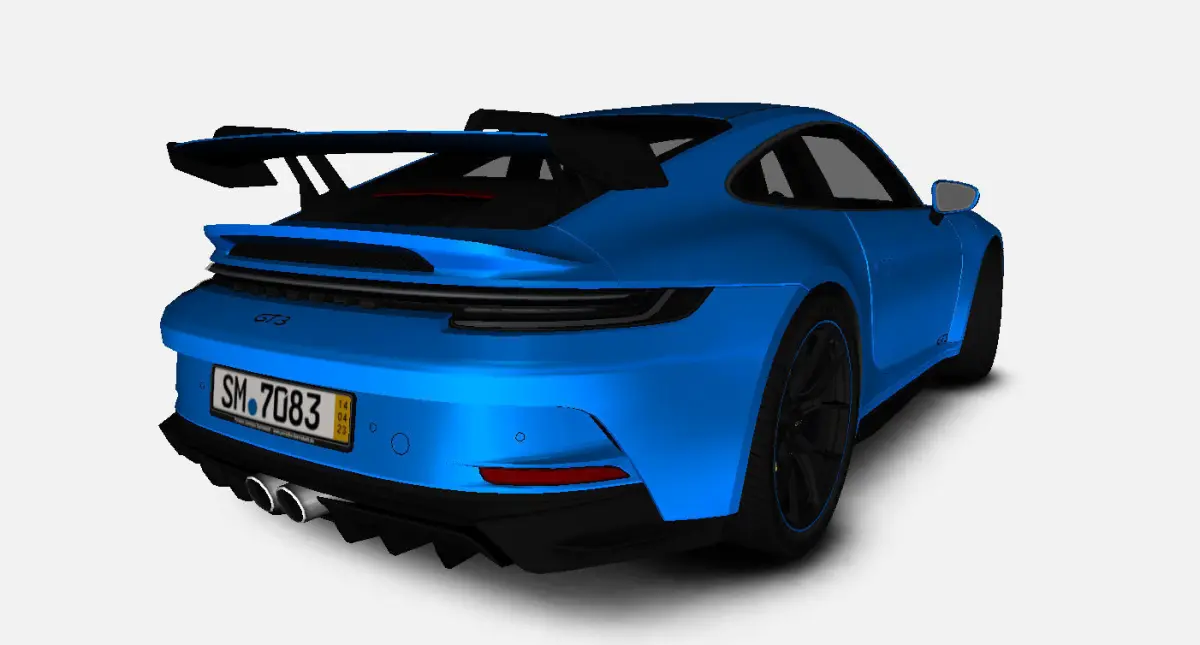 Low-poly model of Porsche 911 in last 992 body. GT3 track version offers 4.0 opposite engine and prepared for racing from factory. Different width wheels with Porsche factory original Michelin Pilot Sport Cup 2 tires, made for this model. Model have detachable numberplates with both proper plate brackets.