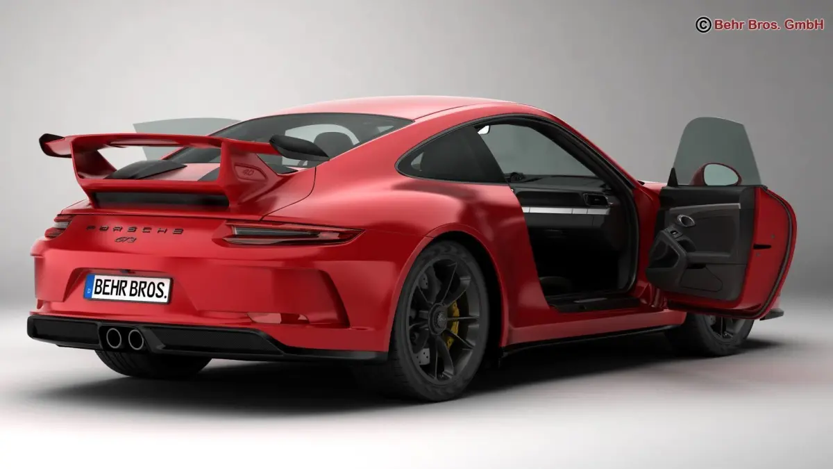 Accurate very high definition Porsche 911 GT3 2018 model with highly detailed interior fully textured. Headlights and taillights are modelled, doors can be opened. The model includes modelled tires.