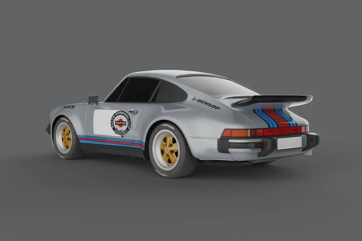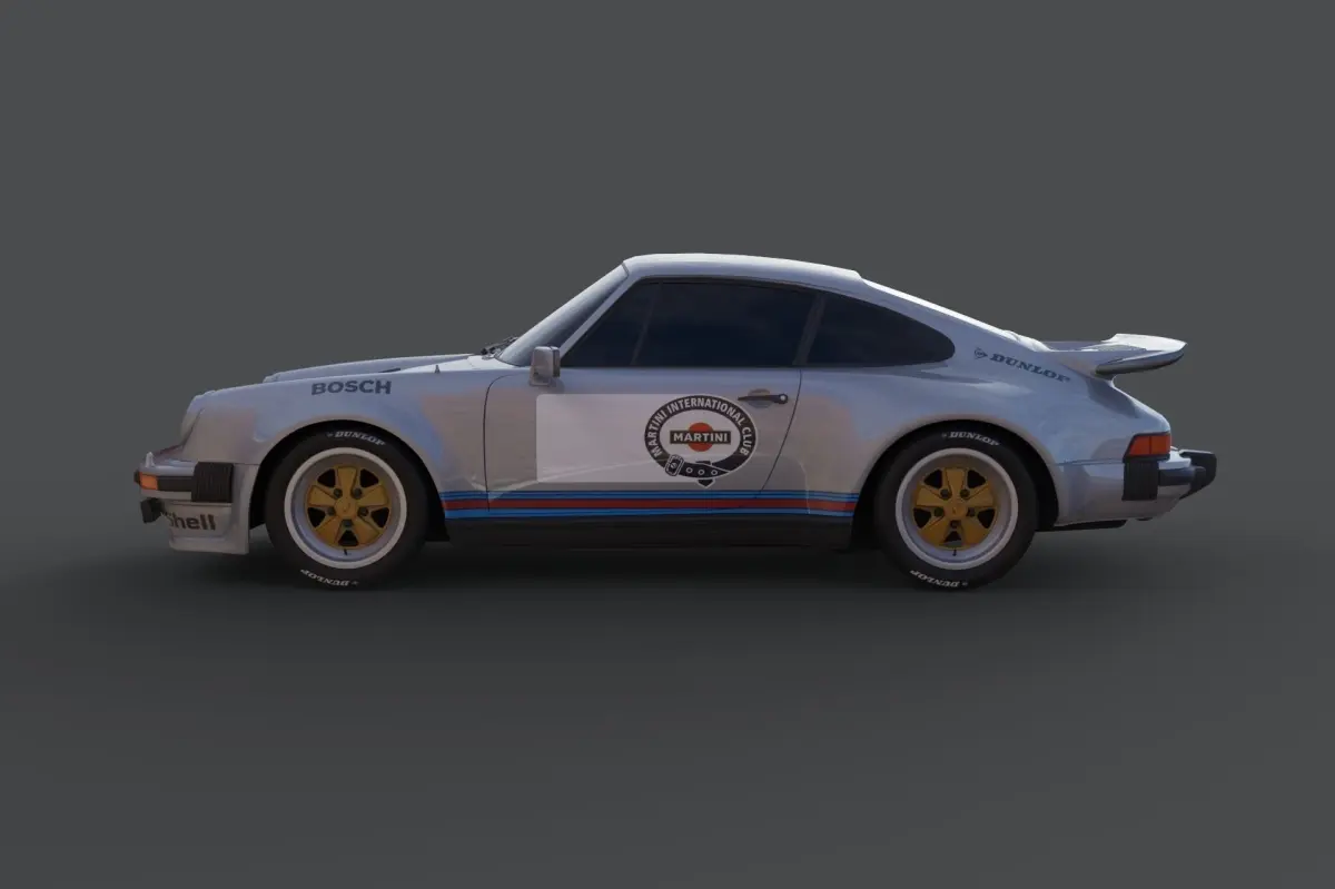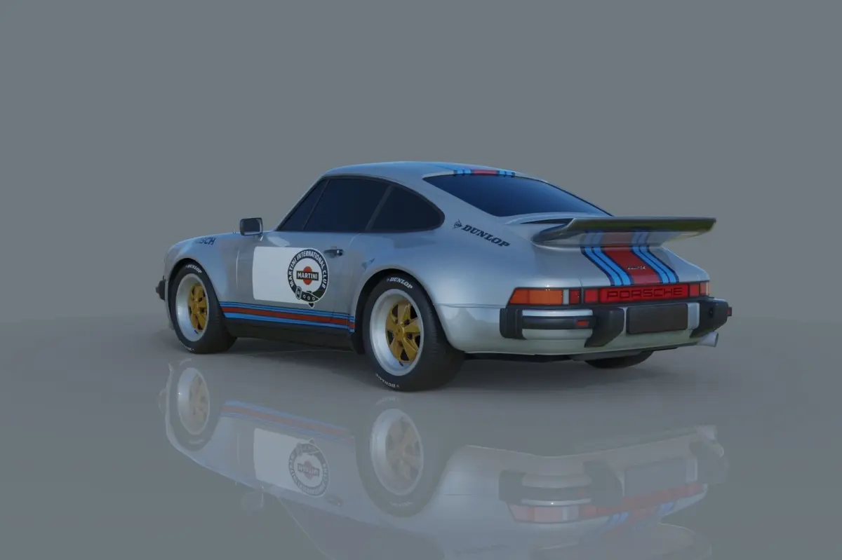 Porsche_911_turbo from 1975Low poly in game ready.Built to industry standards.Textures included, materials standard in 3ds max.No interior.Rendered in Keyshot, scene not included.