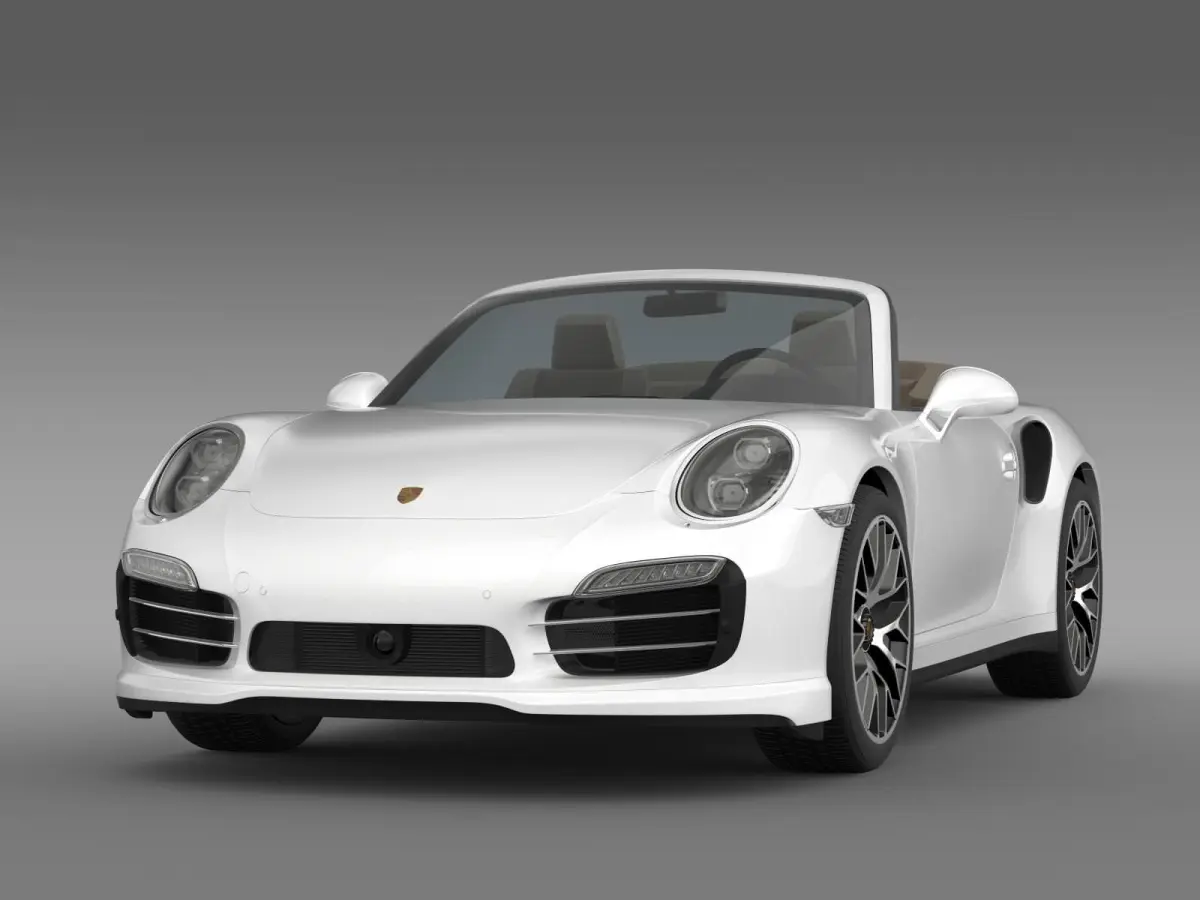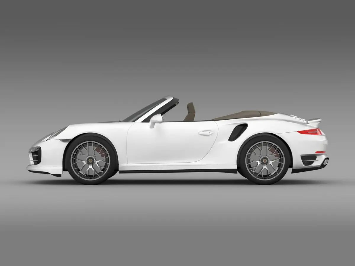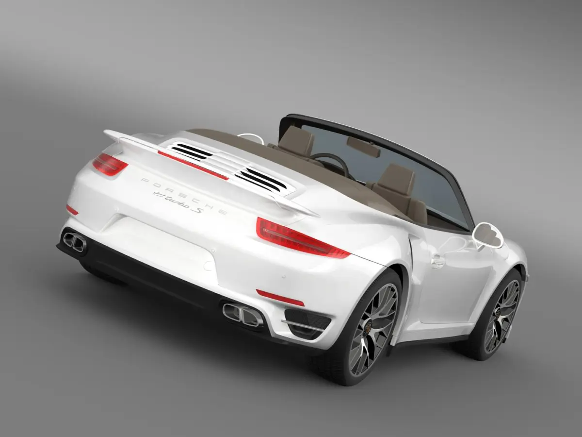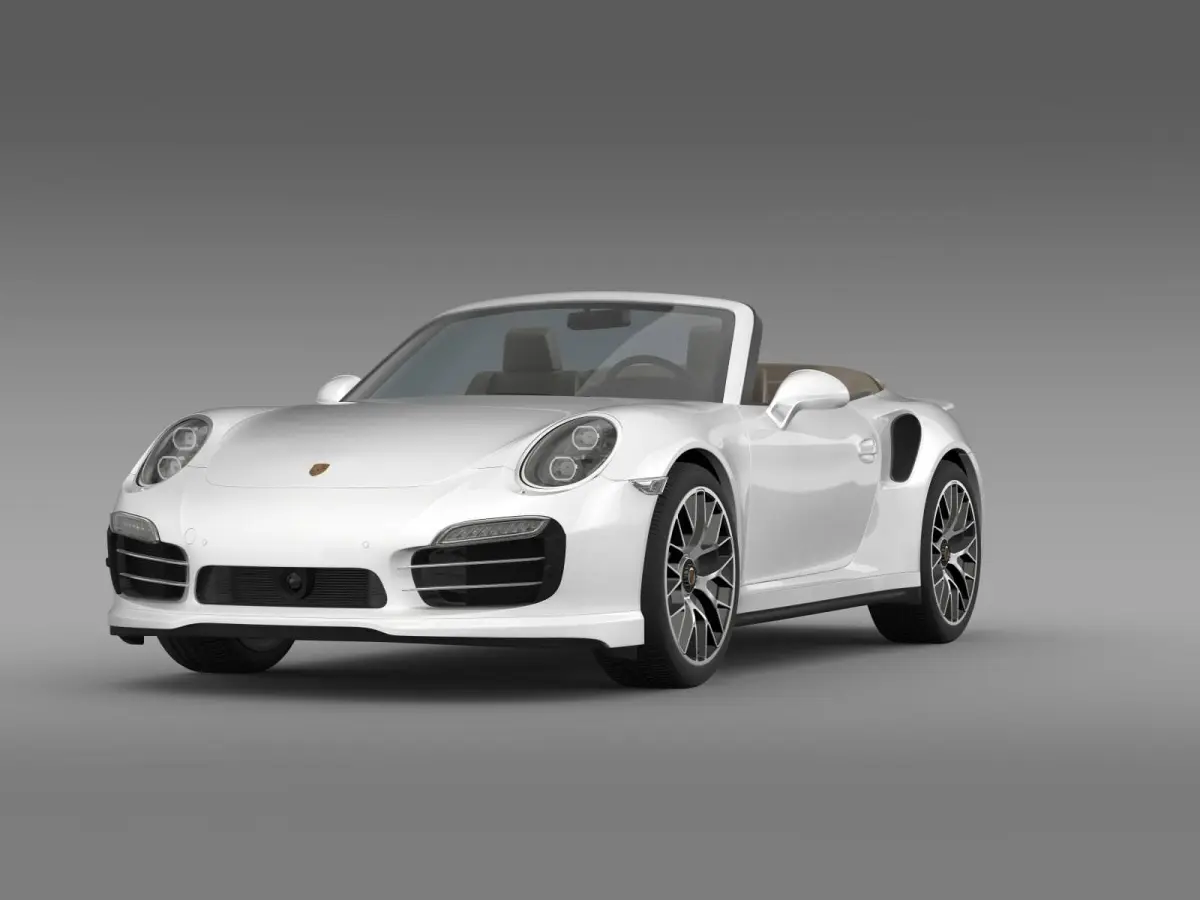 Let me represent you high poly 3d model of Porsche 911 Turbo S Cabrio 2014 (The Porsche 911 (pronounced Nine Eleven or German: Neunelfer) is the flagship of the current line up of Porsche. It is a two-door grand tourer made by Porsche AG of Stuttgart, Germany. It has a distinctive design, rear-engined and with independent rear suspension, an evolution of the swing axle on the Porsche 356.) with high detail.