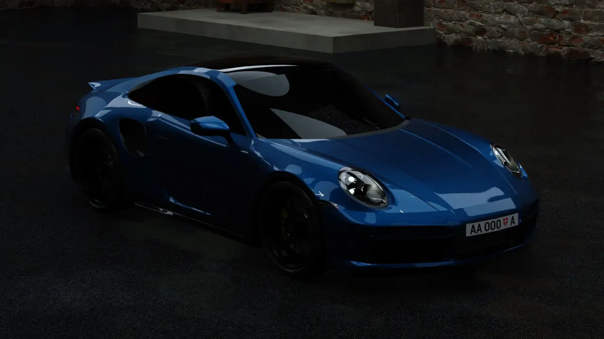 ** The collection includes model of Porsche 911 Turbo S and environment (abandoned hangar), the model also includes a backlight (HDRI).**