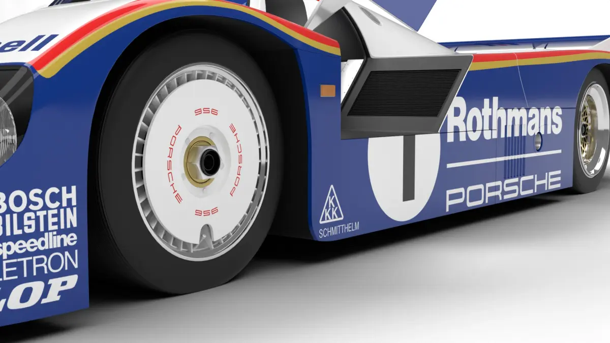 The Porsche 956 is a Group C racing car. Created by the Porsche concern in 1982 for the World Sports Car Championship of the International Automobile Federation. Later, in 1984, this car was improved to the 956B modification.In 1983, Stefan Bellof, during the race qualification, set the Nürburgring absolute record with a time of 6:11.13 on the Porsche 956 racing prototype.