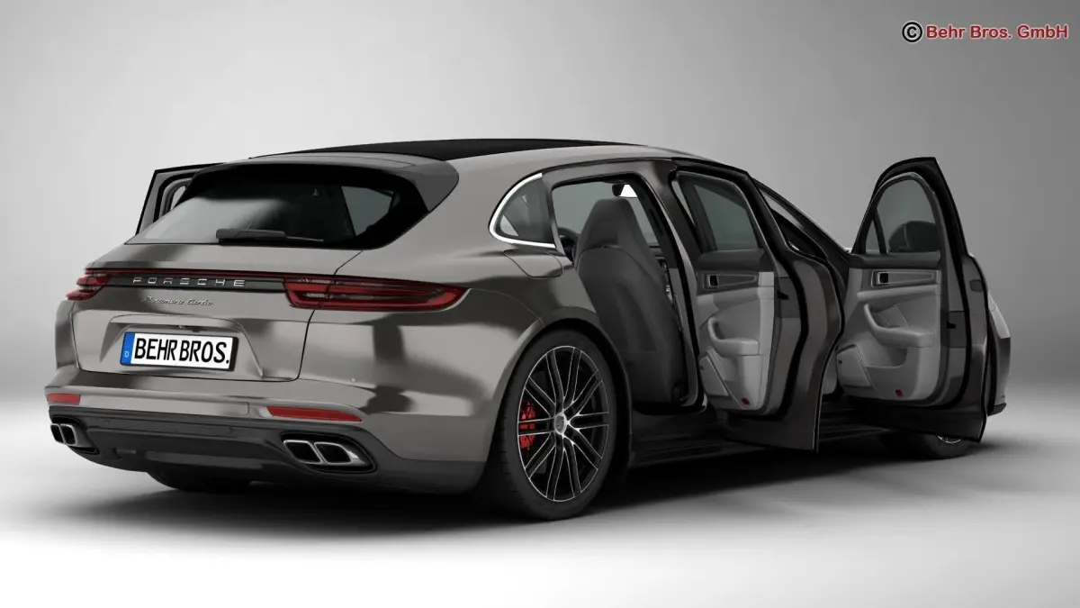 Accurate very high definition Porsche Panamera Sport Turismo Turbo 2018 model with highly detailed interior fully textured. Headlights and taillights are modelled, doors can be opened. The model includes modelled tires.