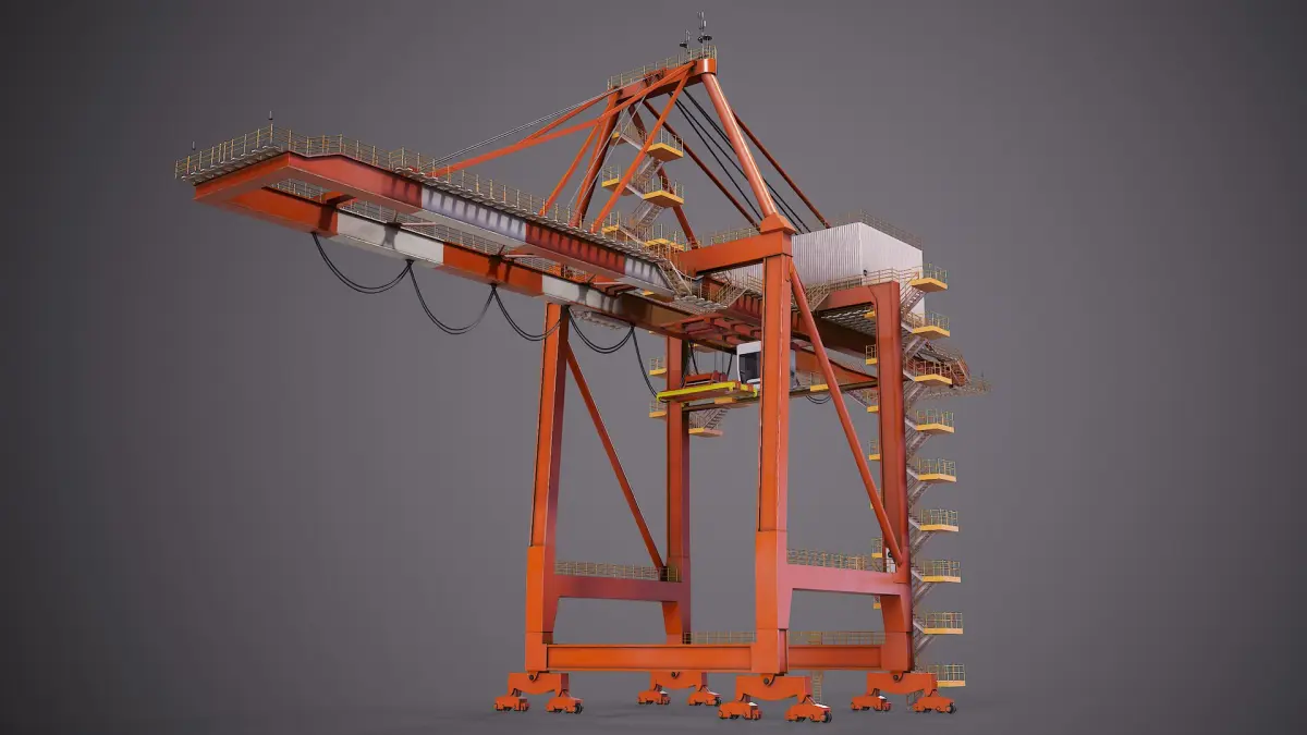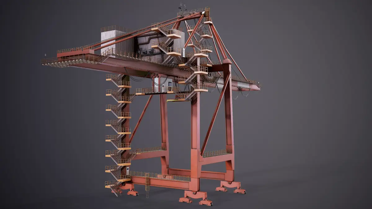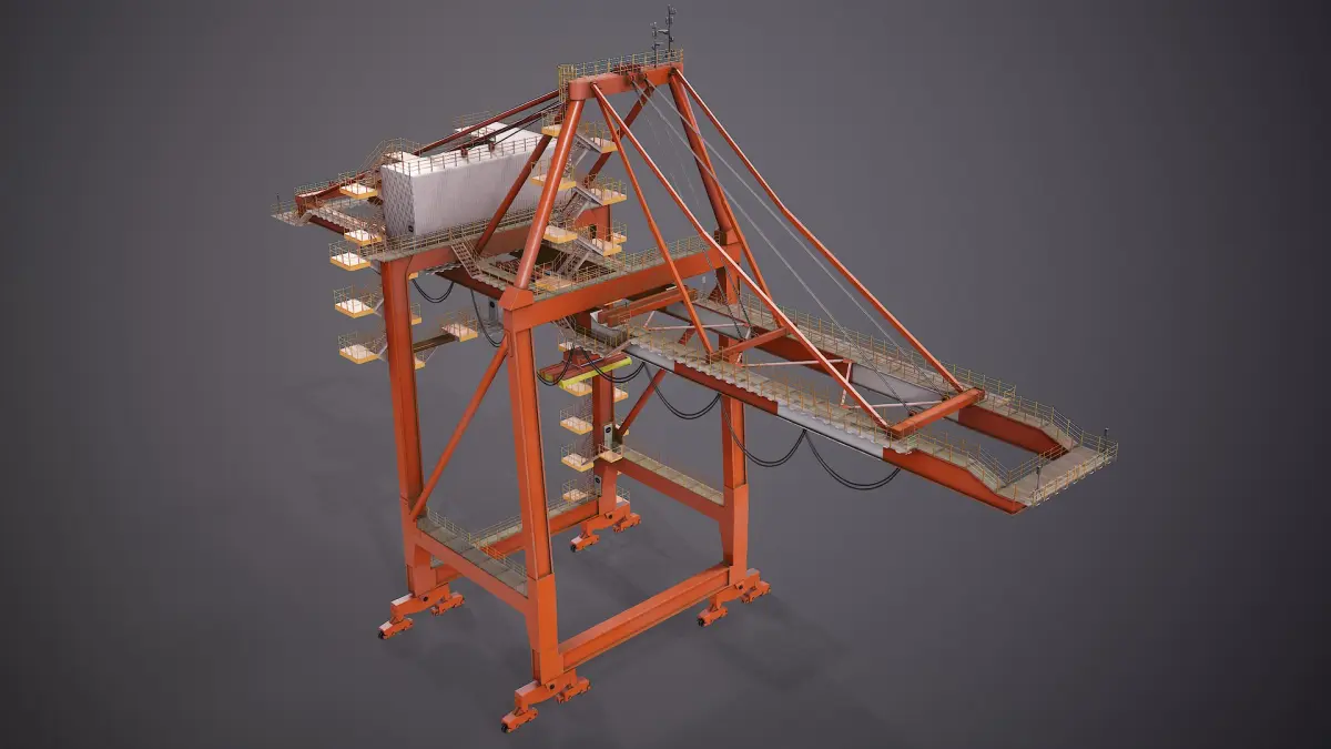 Realistic realtime super high detailed Container Port Crane Red model with high resolution textures and PBR maps.