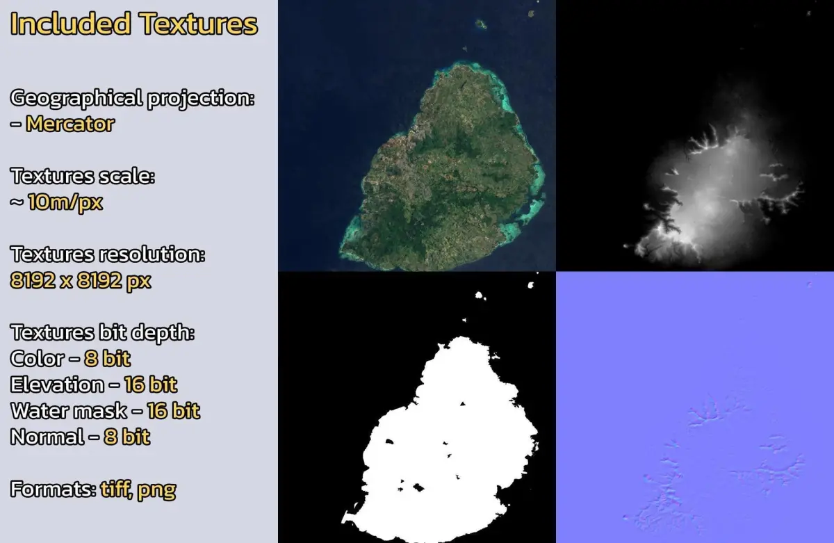 - Textures resolution: ~10m/px