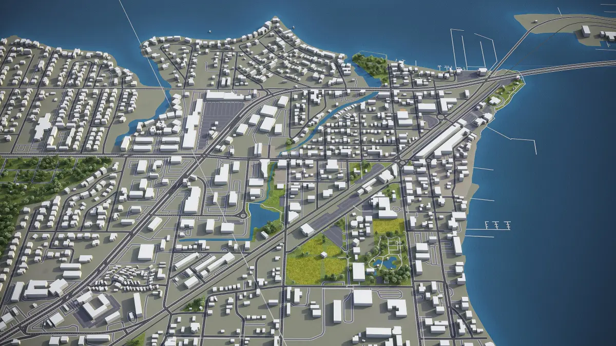 - Full city extents up to 100 x 100 km — or crop to an area of interest for better format compability and scene performance
