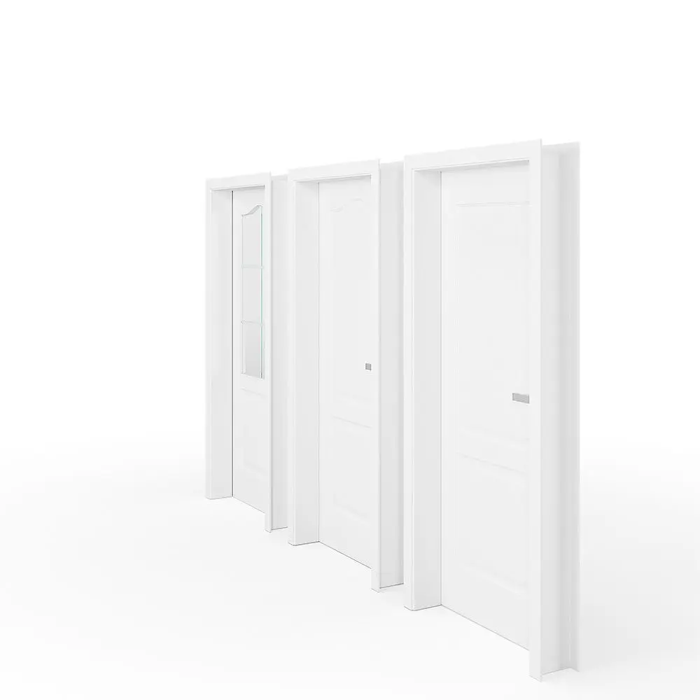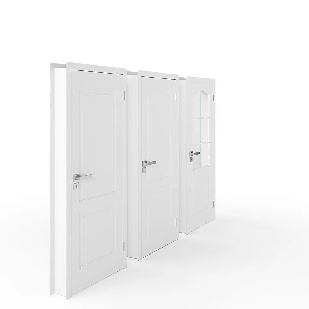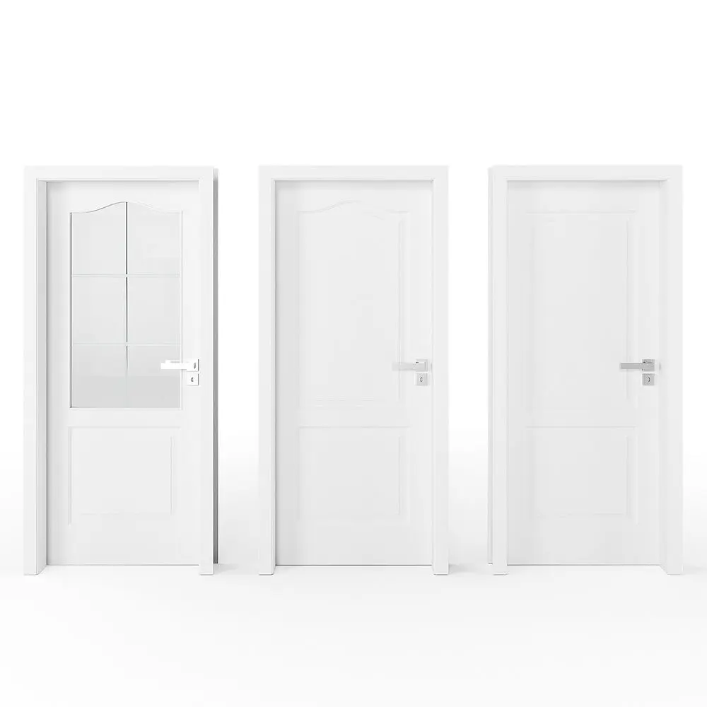 Collection of three traditional wooden doors, painted in a crisp white finish, with a classic design suitable for various architectural styles and interior decors.