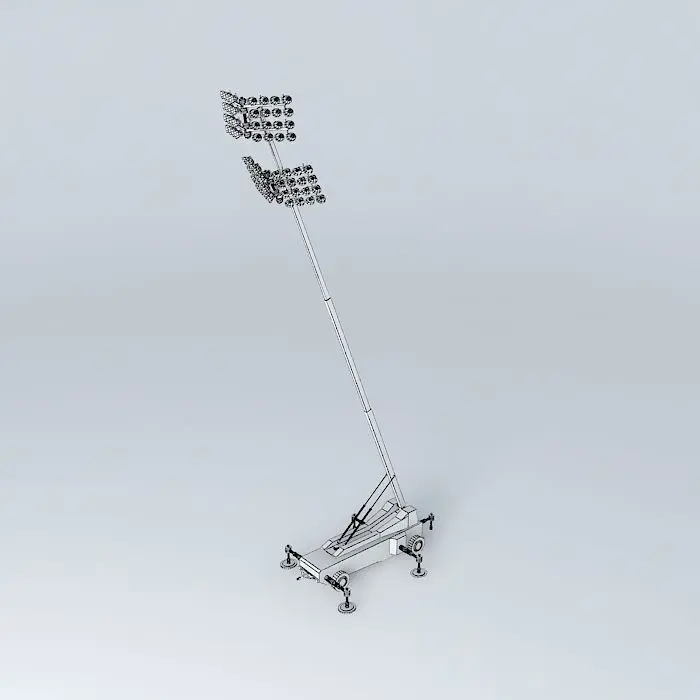 This 3D model was originally created with Sketchup 13 and then converted to all other 3D formats. Native format is .skp 3dsmax scene is 3ds Max 2016 version, rendered with Vray 3.00 A portable flood light tower mounted on a trailer and featuring a large array of high power lights. This is a fictional device that includes parts derived from the Google model Boom Lift. This kind of a flood light tower might be used at a concert, public event, emergency relief operation, construction location or anywhere else where very large areas need to be illuminated. It is far larger and rises much higher than standard flood light systems.