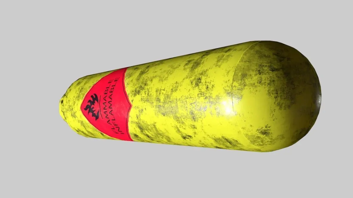 Feel free to assemble a flamethrower or a portable kitchen with this yellow gas cylinder.
