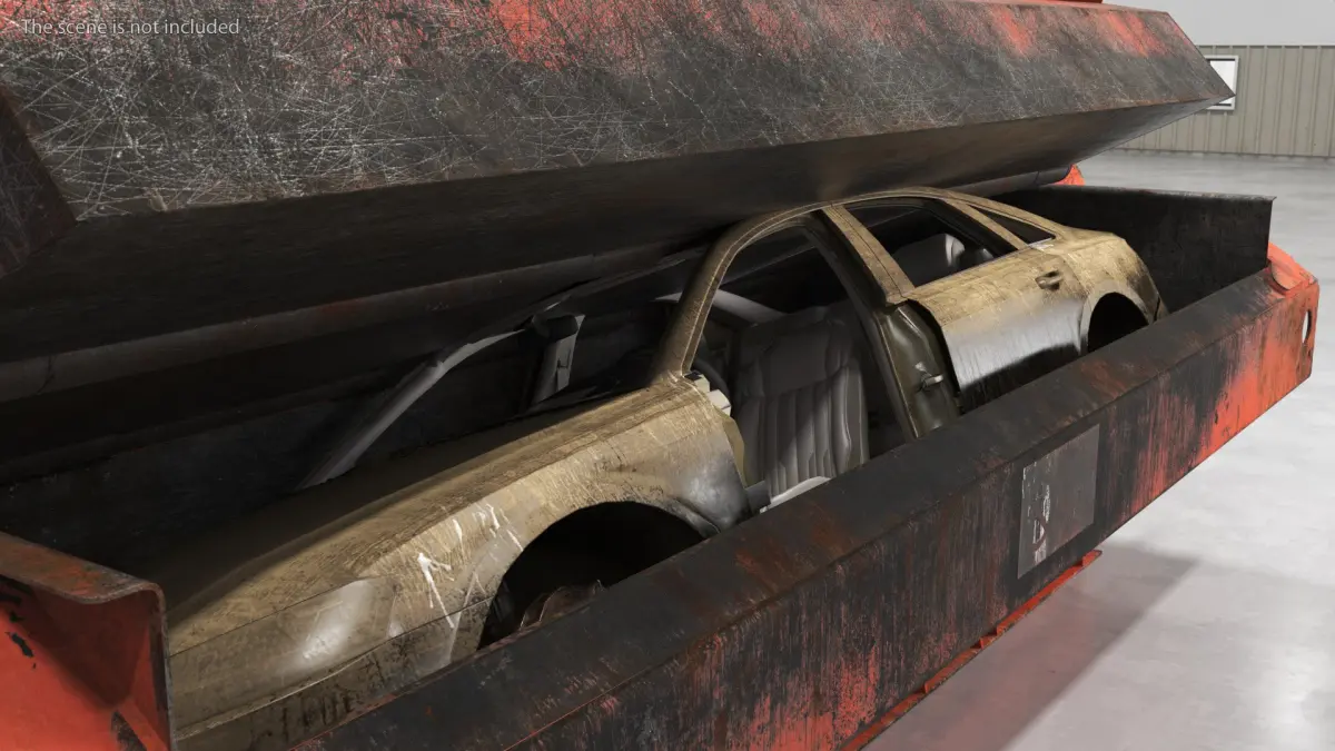 Portable Metal Baler with Scrap Car is a 3d model of a heavy-duty machine designed to compress and recycle automobiles.