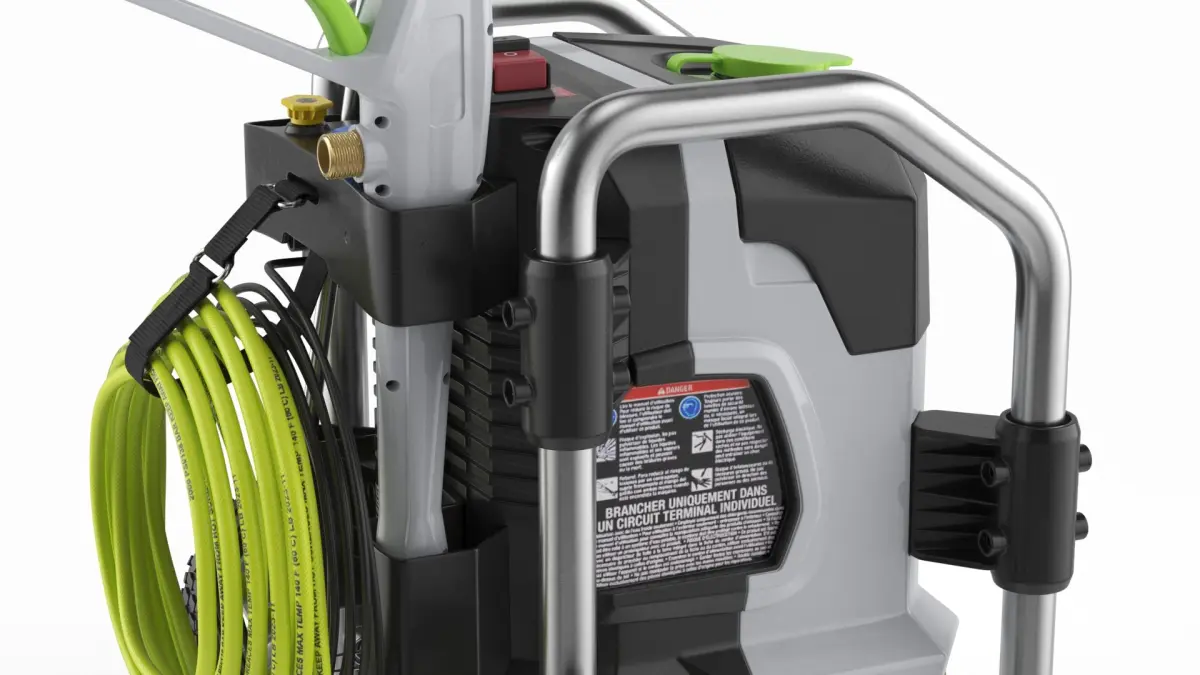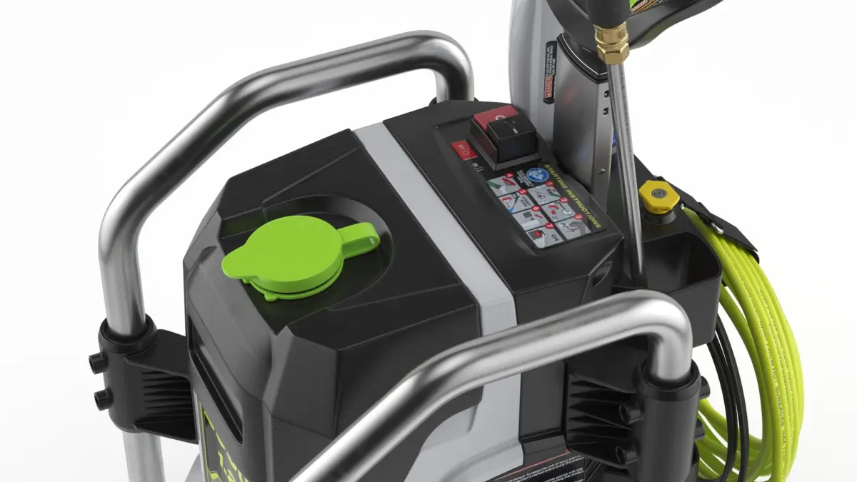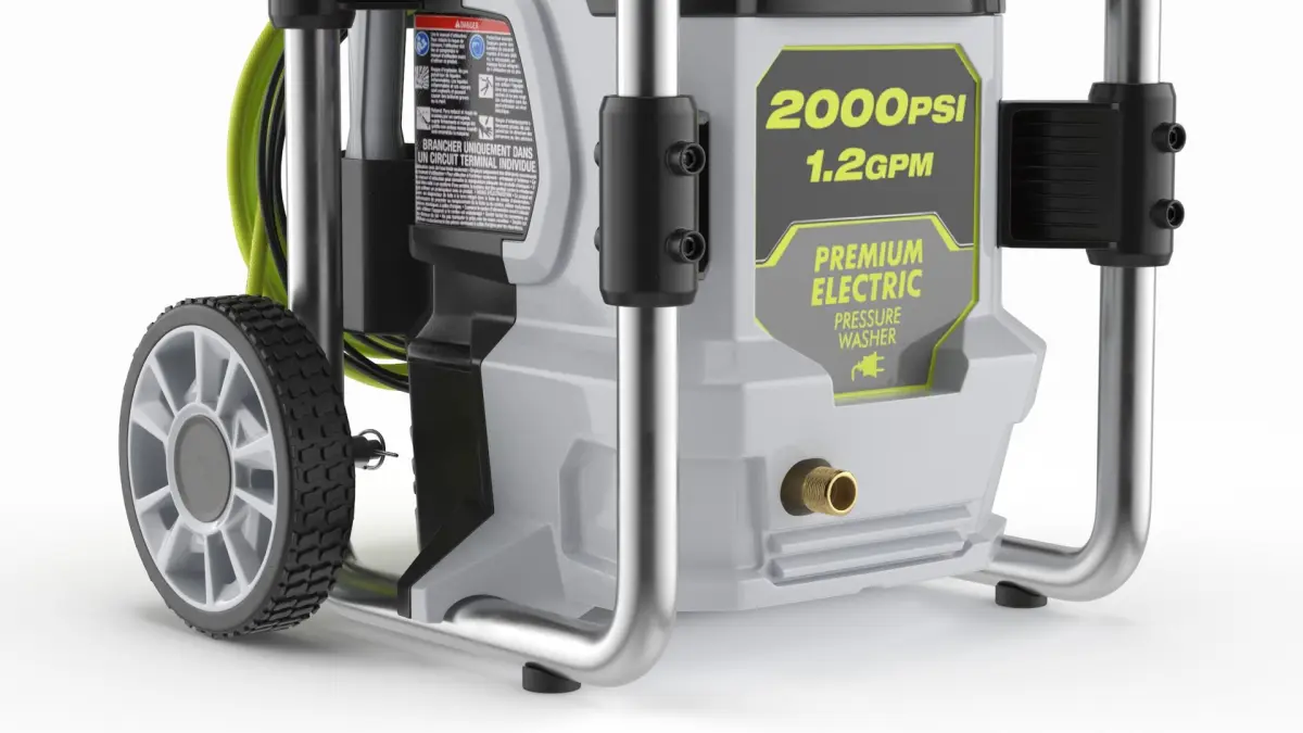 This model replicates the elegant design of the pressure washer, featuring a sturdy build with wheels for easy mobility. The compact structure is perfect for storage and transport while delivering excellent cleaning performance with a 2000 PSI power output.