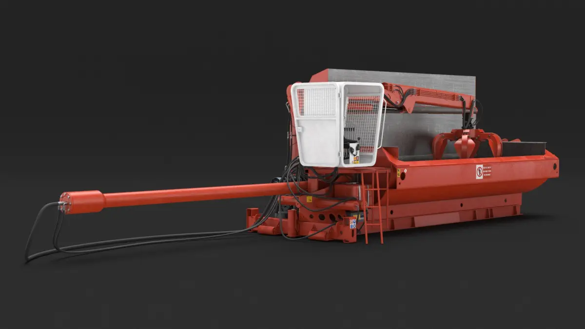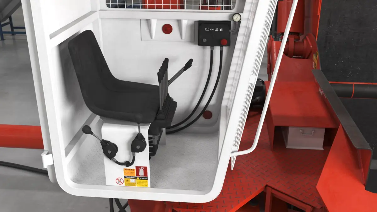 This robust machinery is built from high-strength materials and equipped with hydraulic components for efficient operation. It features a large chamber and press mechanism that compresses scrap metal into compact bales, optimizing storage and transportation. The operator cabin is included for enhanced control and safety during the baling process.