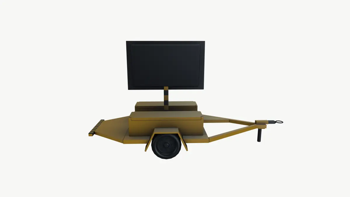 - This compact trailer is designed to maximize visibility and engagement, featuring a high-definition television mounted securely on its sturdy frame.