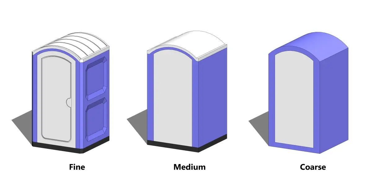 The object was modelled with different geometries for Fine, Medium and Coarse detail levels.