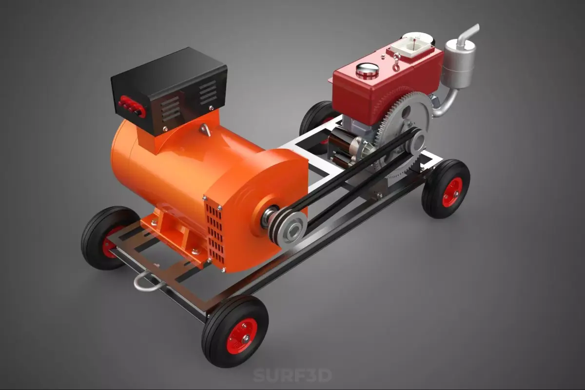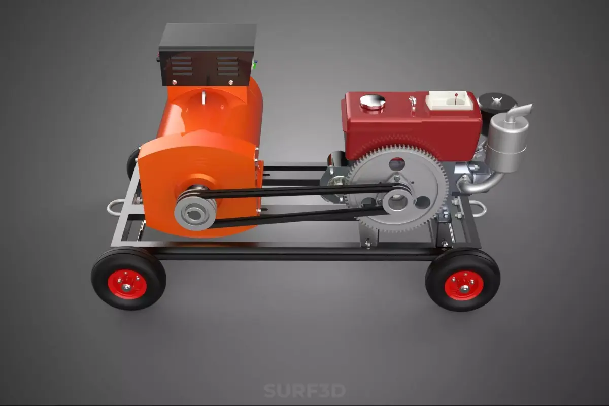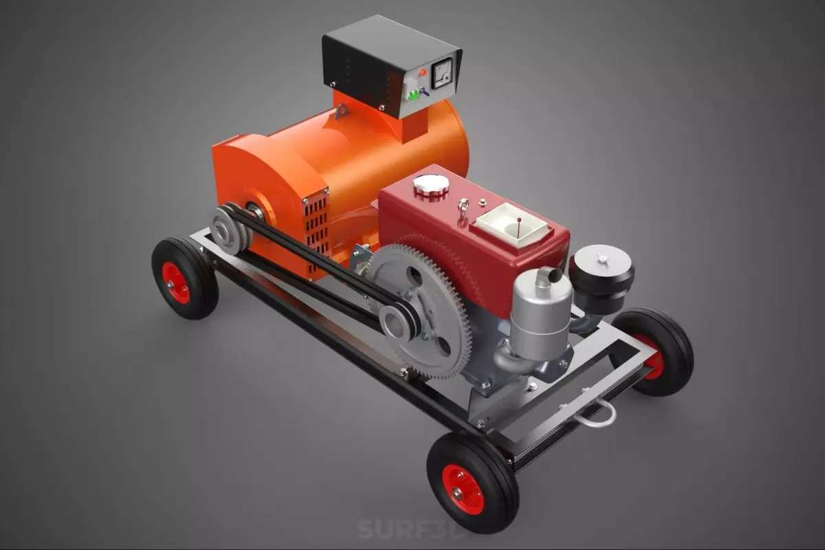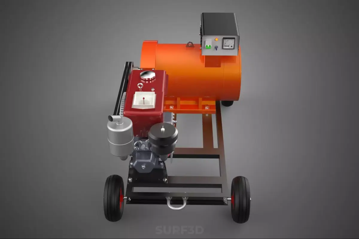 PORTABLE WHEELED DIESEL ENGINE POWER GENERATOR SET GENSET MOTOR 3D model