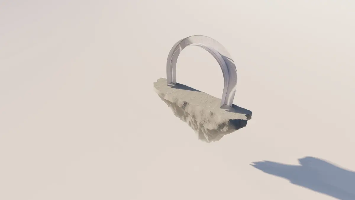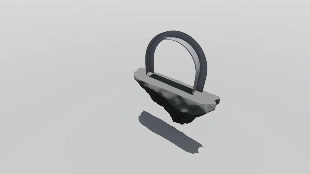 An arch sitting on top of a floating island. Arch can also be used as a portal through which characters can teleport to another location. Suggested materials would be stone or marble. Recommended for use in a gaming environment of a magical, fantasy or even gothic theme.