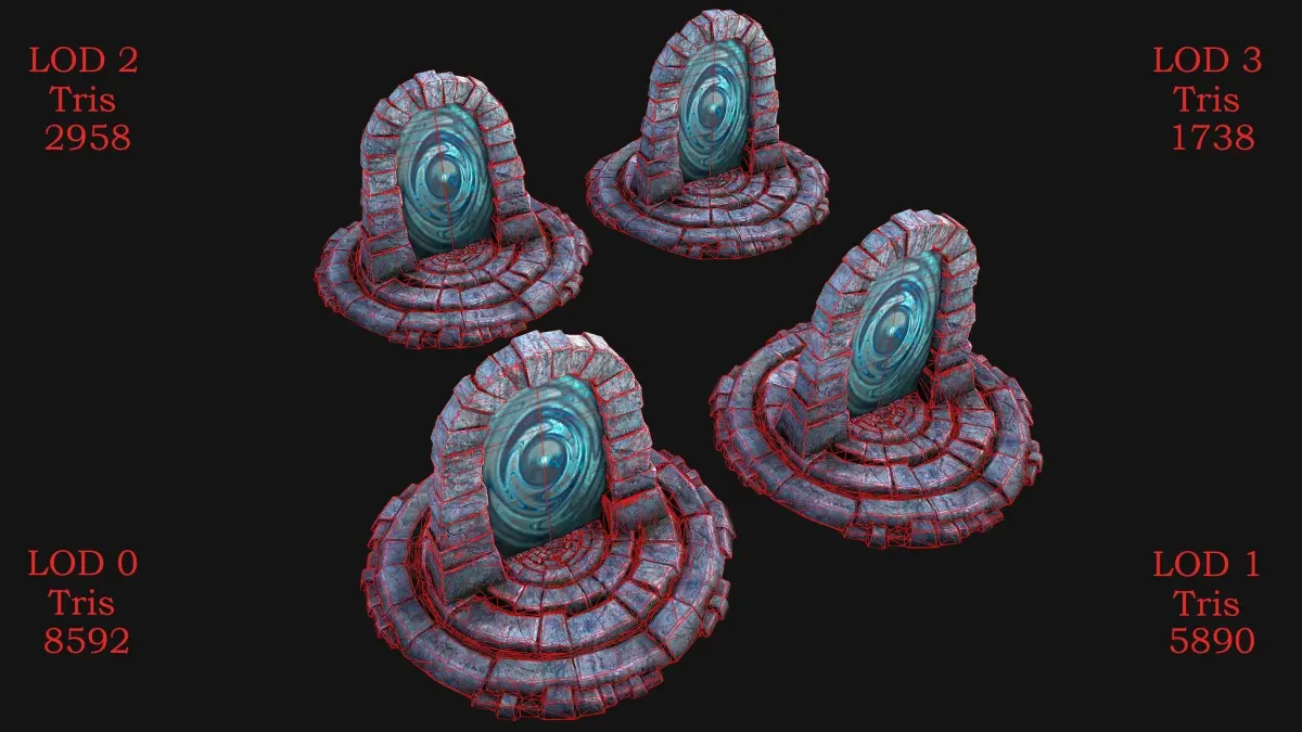 - Edges: 12877(LOD0),8825(LOD1),4427(LOD2),2597(LOD3).