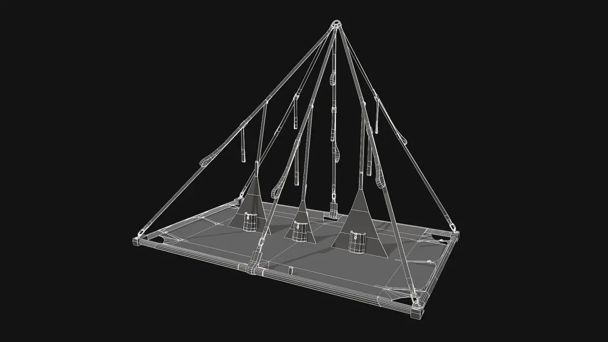 - The tents have overlapping UVs on the sides and the portaledge frame has a lot of UV overlap on repeating elements such as straps, bolts, and carabiners. The tent and frame textures are separated.