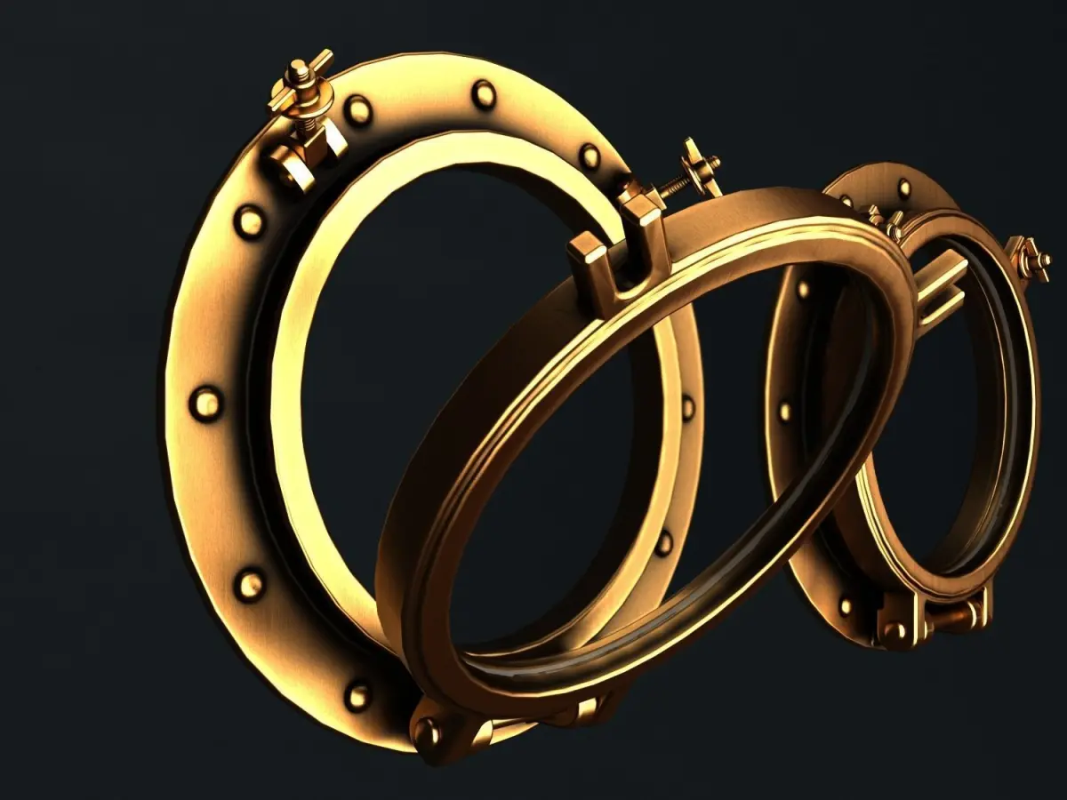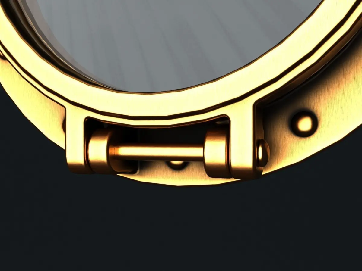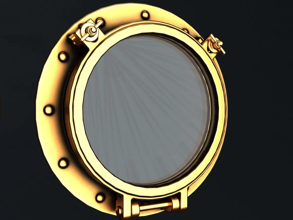 Portholes range in diameter from several inches to more than two feet, and weigh from several pounds to over one hundred pounds. Much of the porthole's weight comes from its glass, which, on ships, can be as much as two inches thick. Metal components of a porthole are also typically very heavy; they are usually sand-cast and made of bronze, brass, steel, iron, or aluminium. Bronze and brass are most commonly used, favoured for their resistance to saltwater corrosion. The design of the porthole is such that it achieves its humble purposes without sacrificing the integrity of the ship's hull. The porthole's thick glass and rugged construction, tightly spaced fasteners, indeed even its round shape, all contribute to its purpose of maintaining hull strength and withstanding the pressure of storm waves crashing against it.