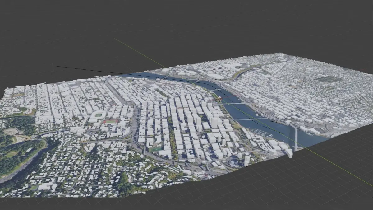 This 3D model of Portland, Oregon was created using Blender