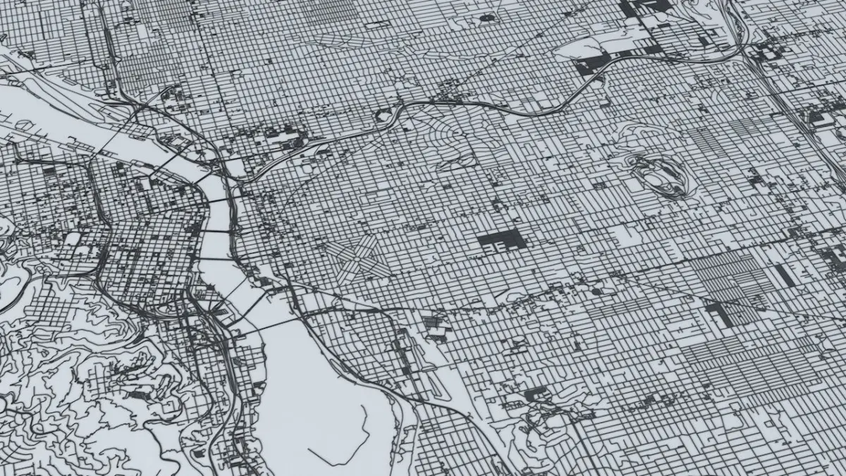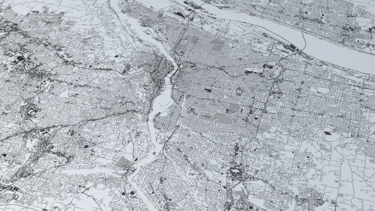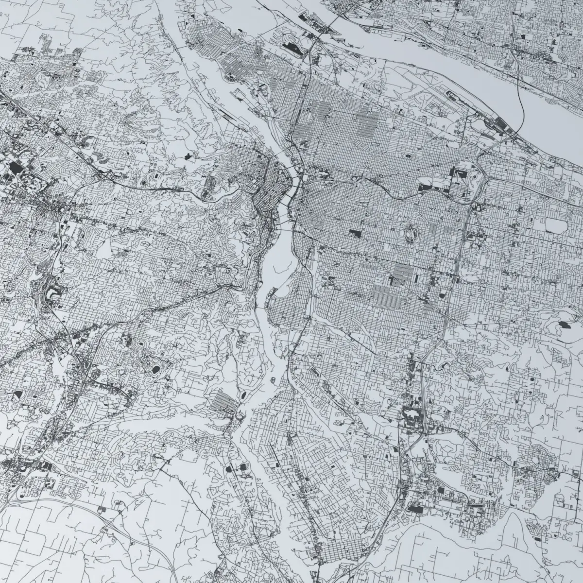 this model is based on real data therefore this is a realistic road network and streets setup of Portland, USA- 2 objects included | 1. roads and streets 2. squares and plazas- UV mapped with overlapping UVs- the model is positioned on a flat surface (road network is on the “floor” - no elevation data included)- geometry is polygonal quads and tris- model is untextured and renders fast