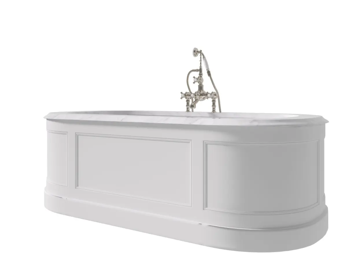 THE PORTMAN PAINTED BATH, WHETHER FREESTANDING OR BUILT-IN USING OUR SIDE AND END PANELS IS AVAILABLE WITH AN ARRAY OF PRIZED MARBLE AND LIMESTONE TOPS WITHIN OUR PORTER MATERIALS SELECTION. THERE IS NO BETTER VANTAGE POINT FROM WHICH TO ADMIRE THE CALM QUIETUDE OF YOUR PORTER BATHROOM.