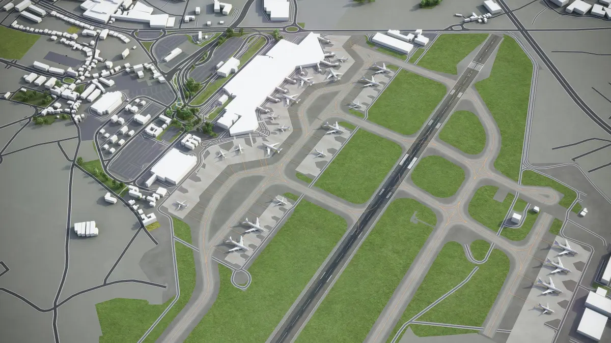 - Trees, vegetation, land-use and airport surface with the textures assigned