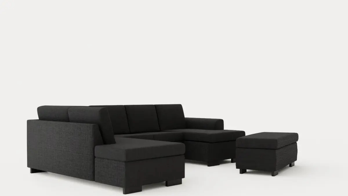 Porto U Sofa With Divan Right Footstool Low-poly 3D model