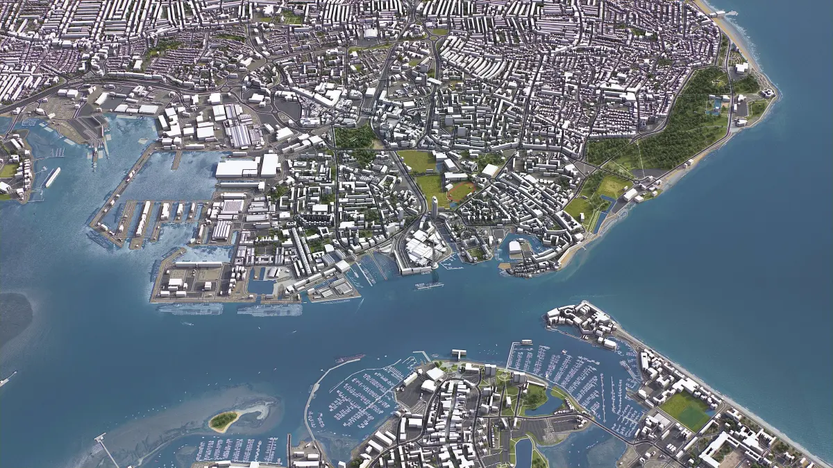 - Full city extents up to 100 x 100 km — or crop to an area of interest for better format compability and scene performance