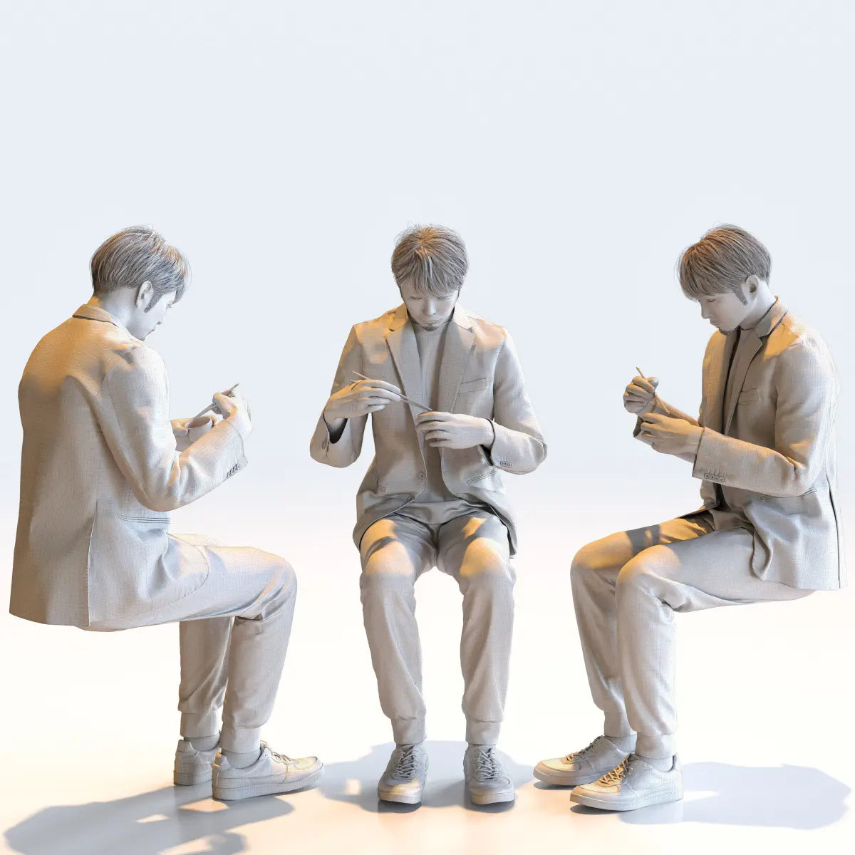 Set of 5 Posed Asian Casual Man 3D models for architectural visualization scenes and CG projects.