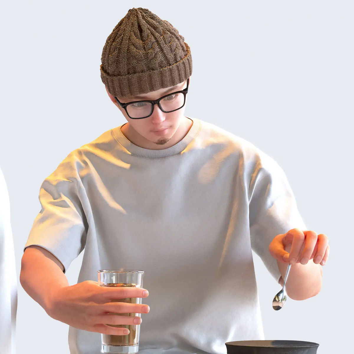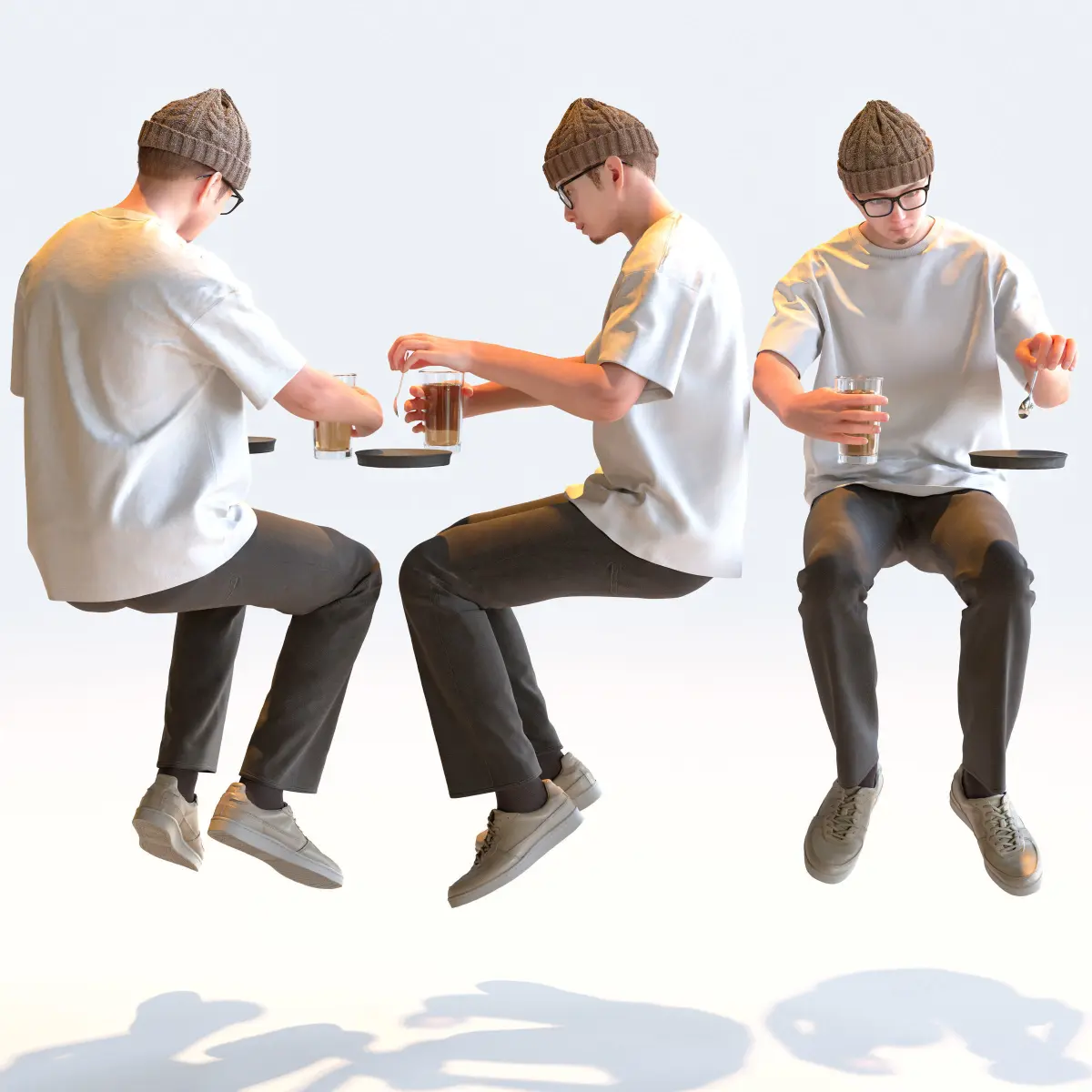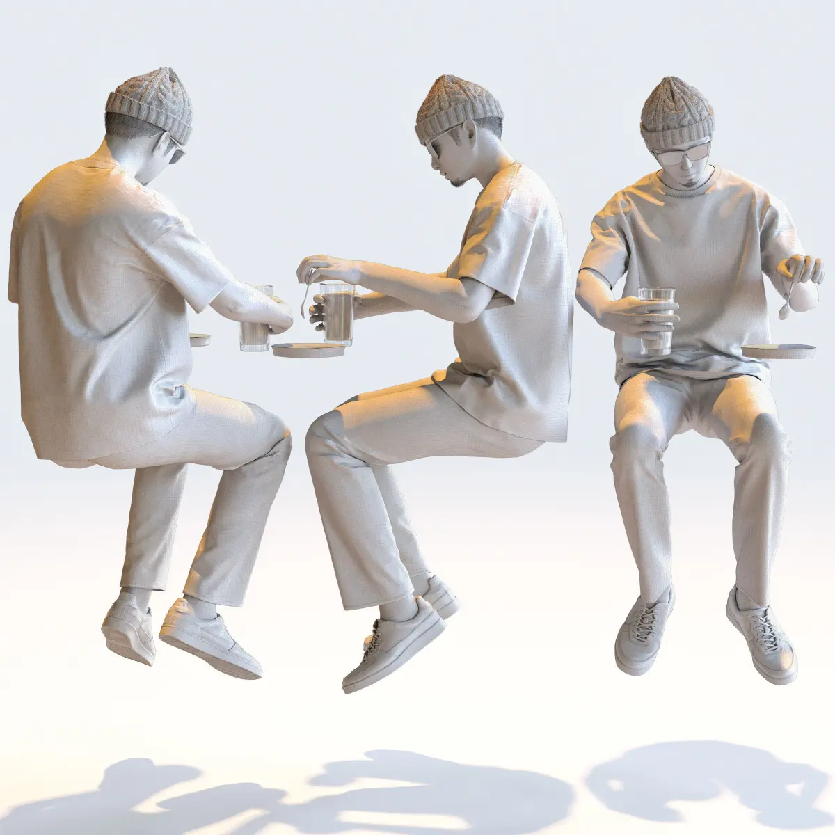 Set of 5 Posed Asian Casual Man 3D models for architectural visualization scenes and CG projects.