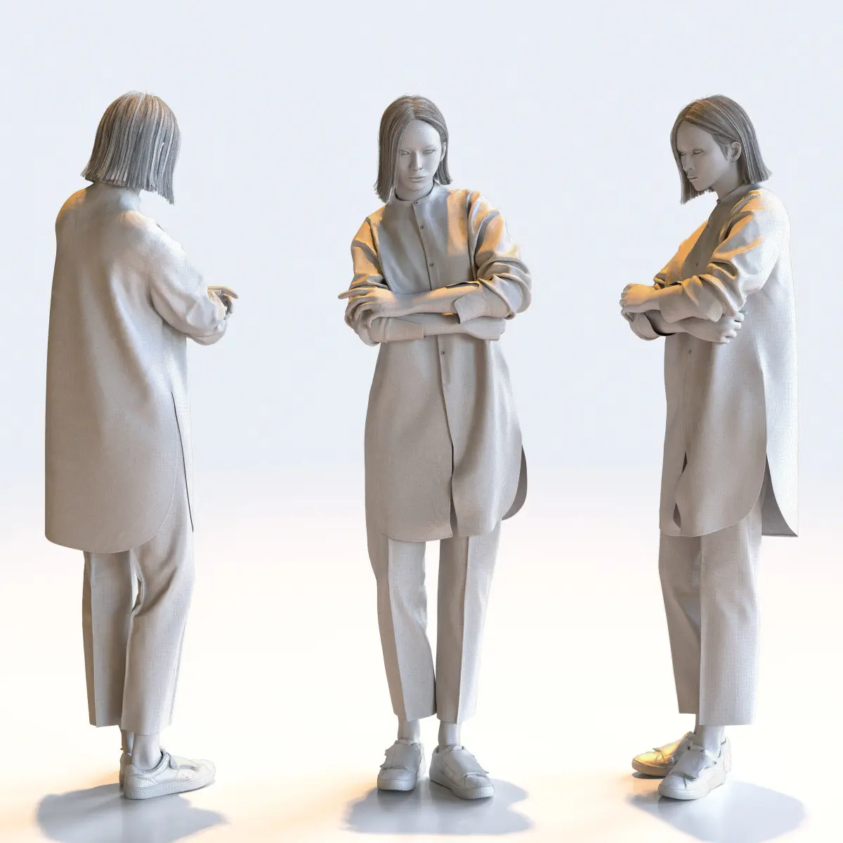 Set of 5 Posed Asian Casual Woman 3D models for architectural visualization scenes and CG projects(VR, AR, games).