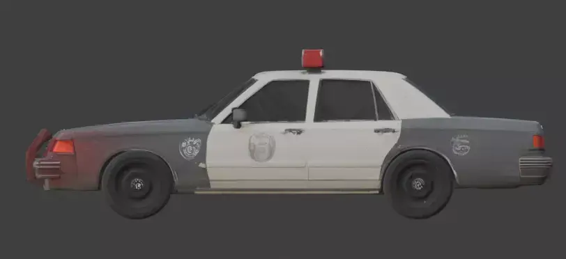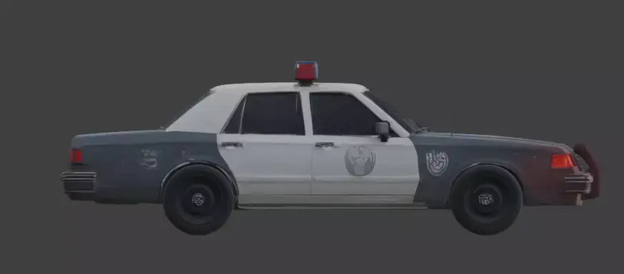 The model captures a professional level of macabre detail, from the tattered black interior window coverings to the aged emergency light bar and vintage rims. Every element is meticulously crafted to ensure a polished yet haunted appearance, making it an ideal centerpiece for horror-themed open-world games, cinematic supernatural renders, or spooky urban environment builds. Provided on an isolated white background, this possessed patrol car is ready to bring a sense of high-speed dread and authoritative mystery to your creative projects.