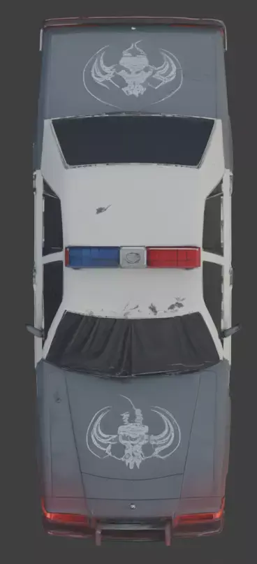 Tagshorror car, police car, haunted vehicle, possessed, demonic, occult symbols, 3d model, game asset, dark fantasy, weathered,
