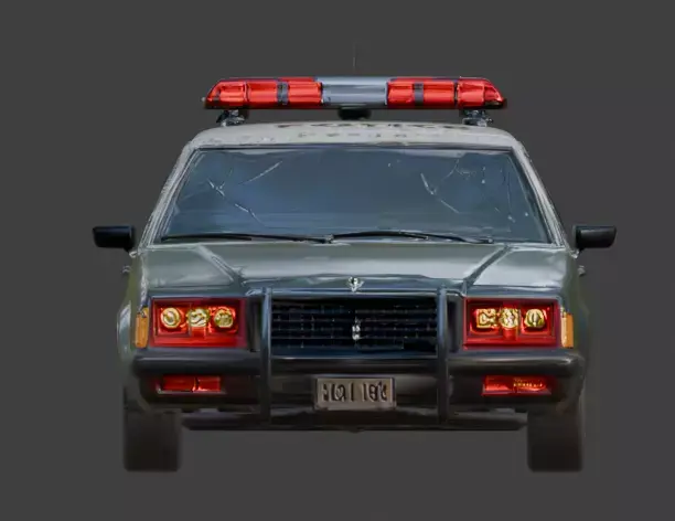 Tagshorror car, police car, haunted vehicle, possessed, demonic, patrol car, 3d model, game asset, dark fantasy, weathered, vintage car, halloween, creepy, interceptor, glowing lights, realistic, cracked windshield, urban horror, death, 3d prop