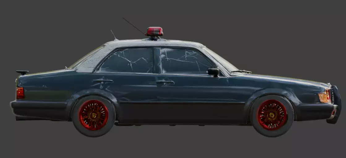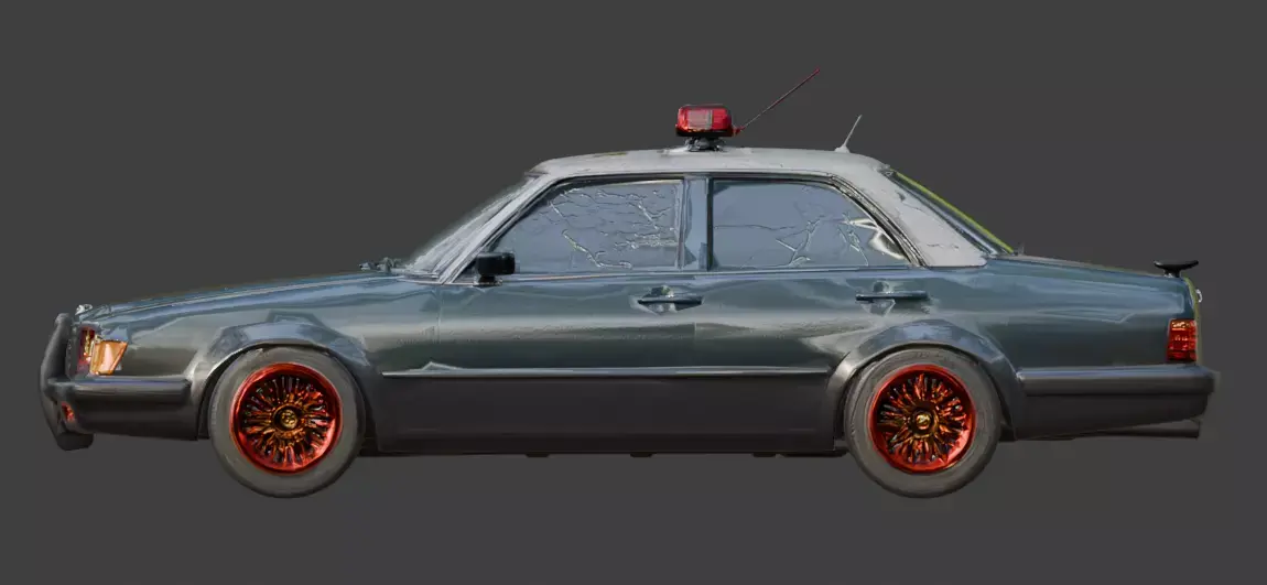 The model captures a professional level of macabre detail, from the shattered spiderweb-cracked windshield glass to the aged emergency light bar and vintage patrol rims. Every element is meticulously crafted to ensure a polished yet haunted appearance, making it an ideal centerpiece for horror-themed open-world games, cinematic supernatural renders, or spooky urban environment builds. Provided on an isolated white background, this possessed interceptor is ready to bring a sense of high-speed dread and authoritative mystery to your creative projects.