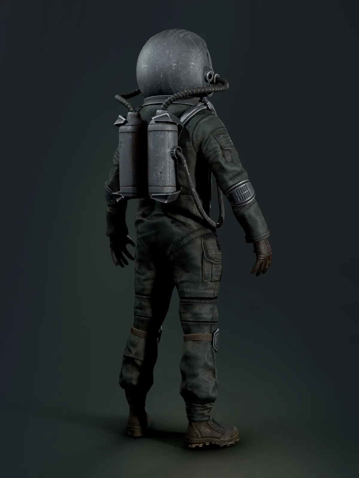 -Post-Apocalypse Astronaut .Game ready low-poly model,RIGGED: compatible with UE4 Epic Skeleton