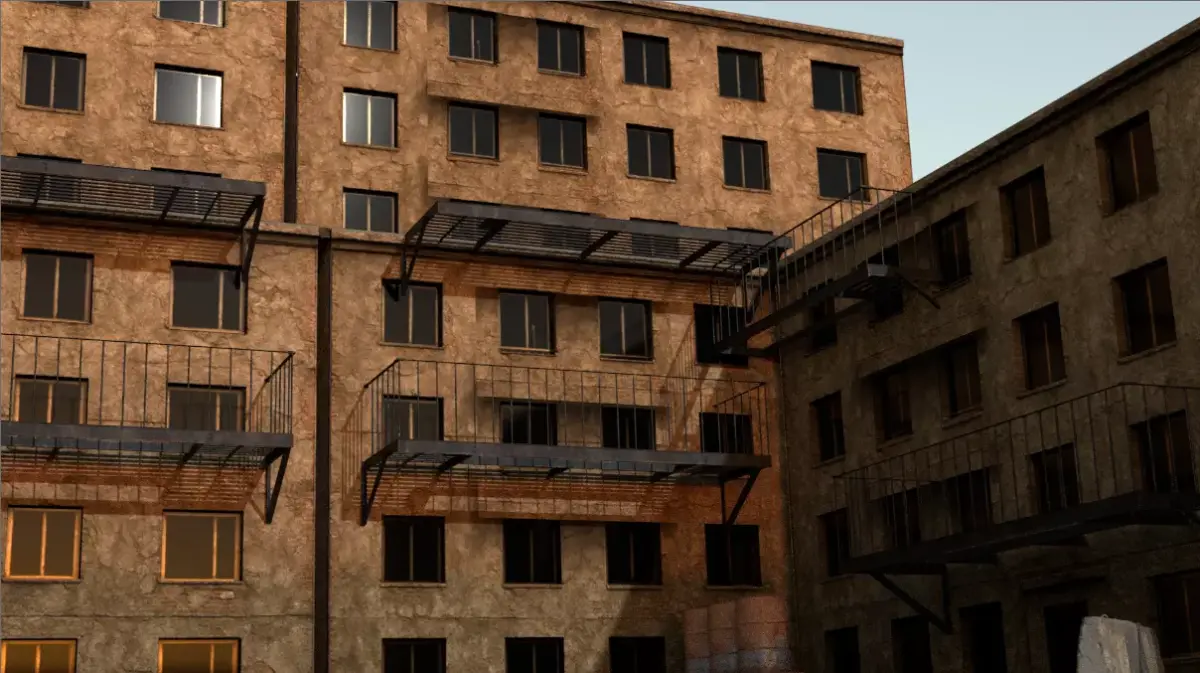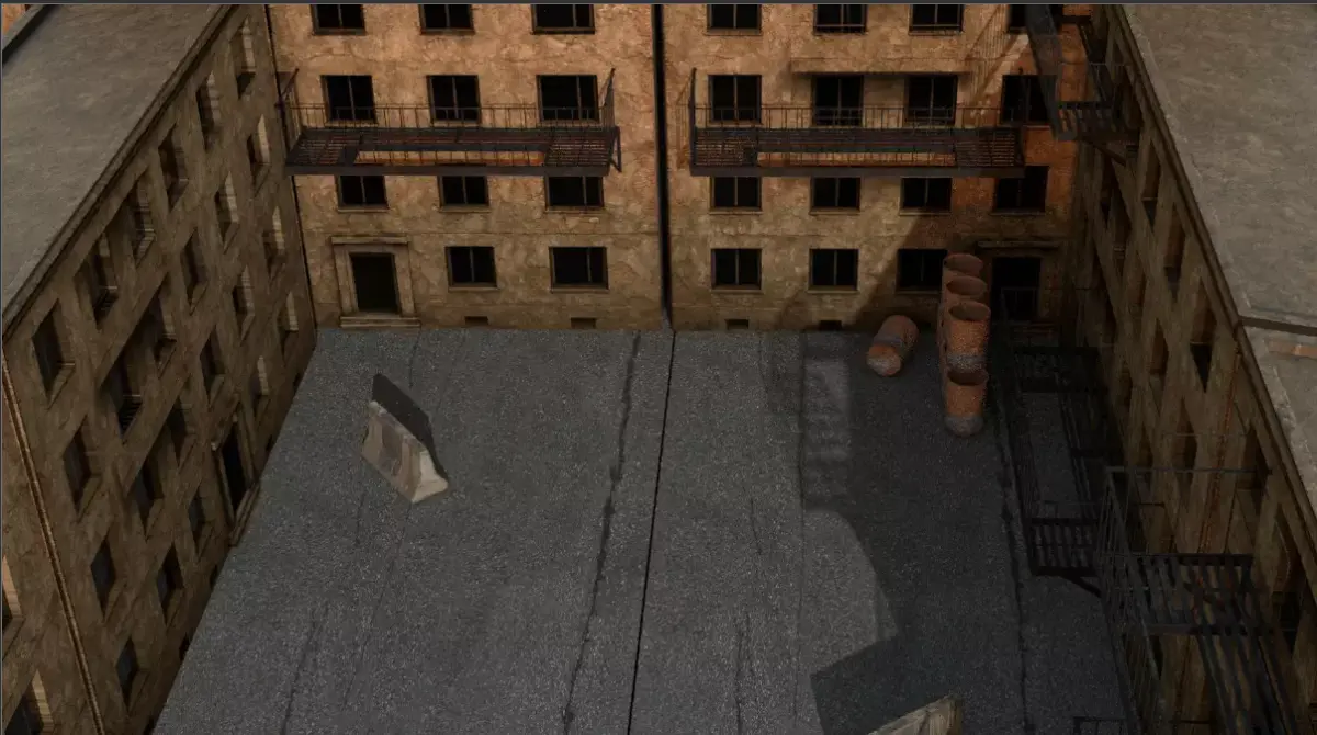 this is a Post-apocalypse barricade scence for games and animation, zombie apocalypse last stand, old buildings